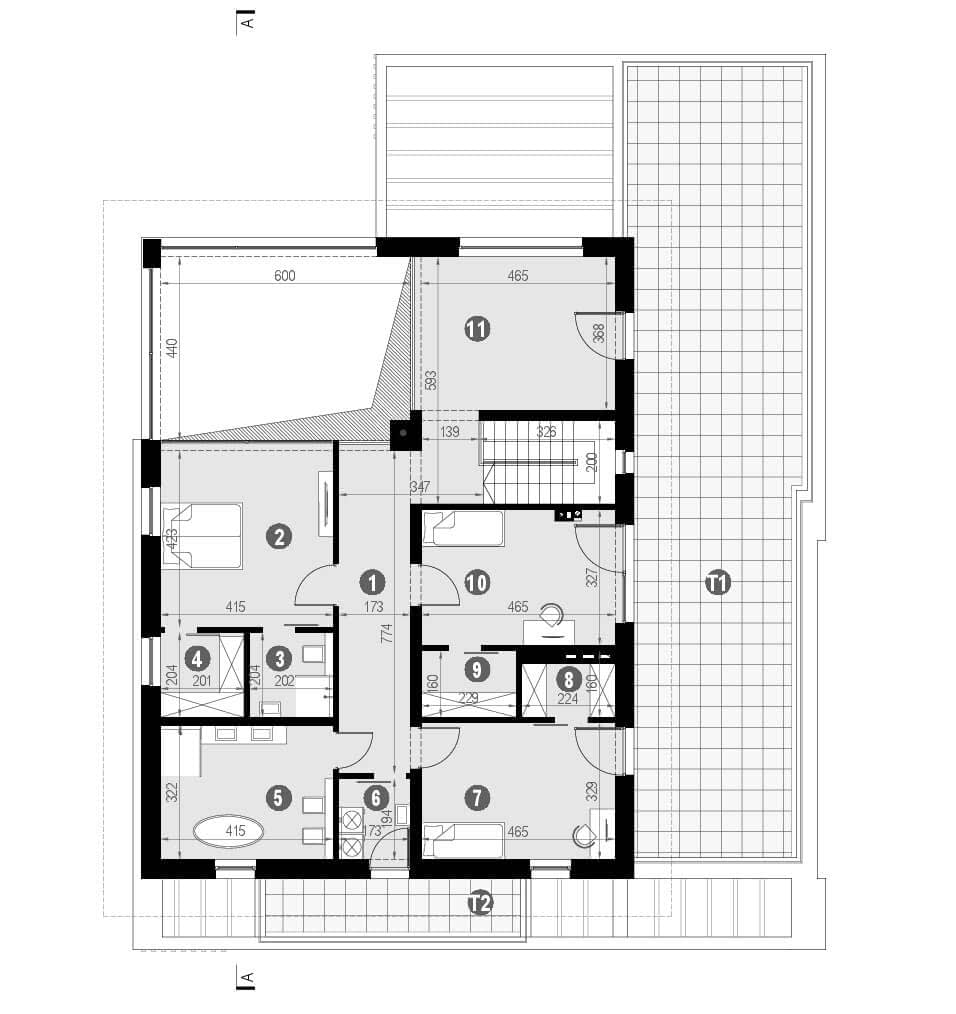 - rzut dachu i więźby dachowej,