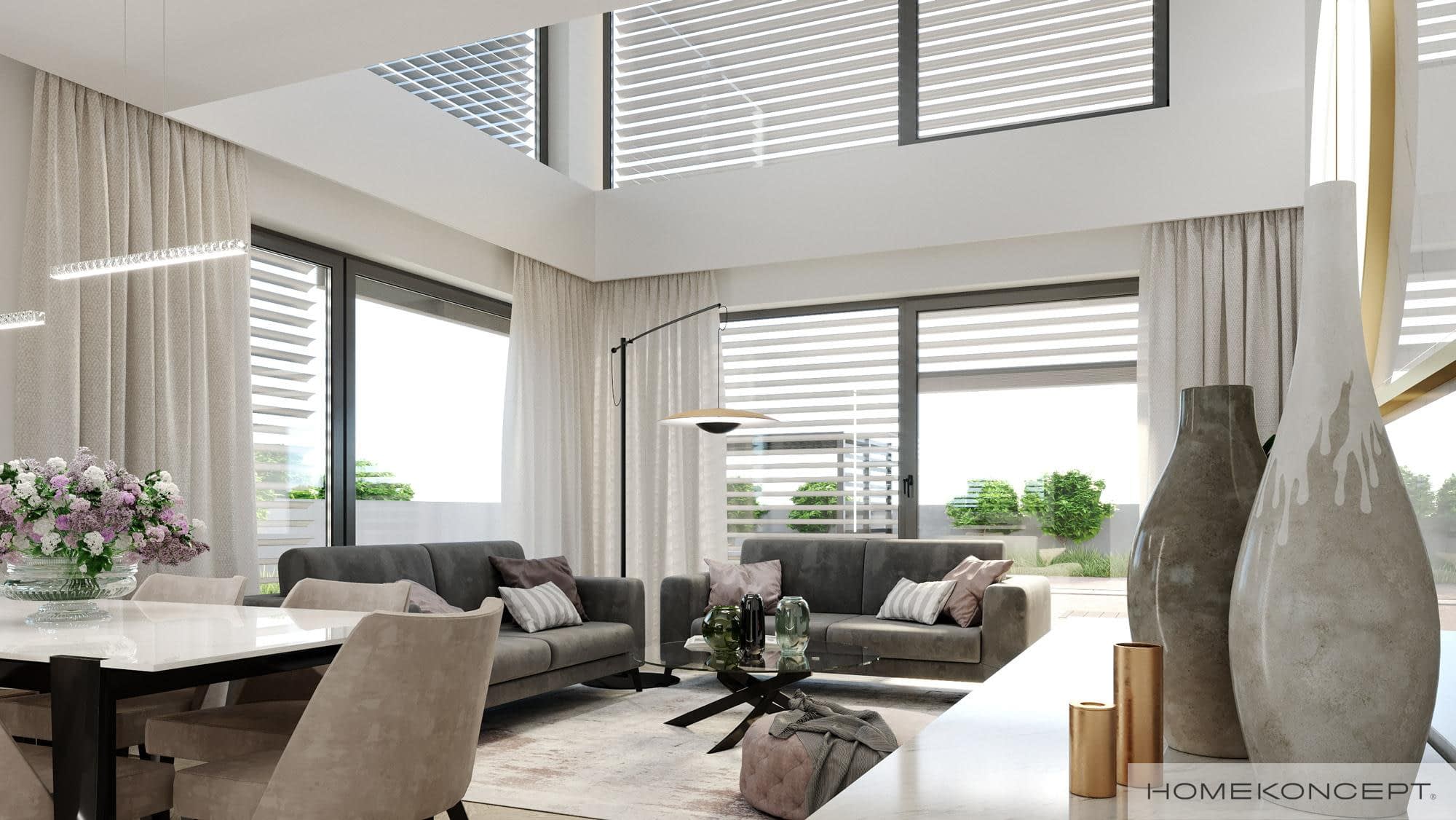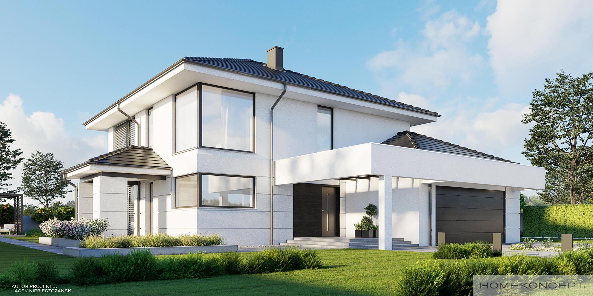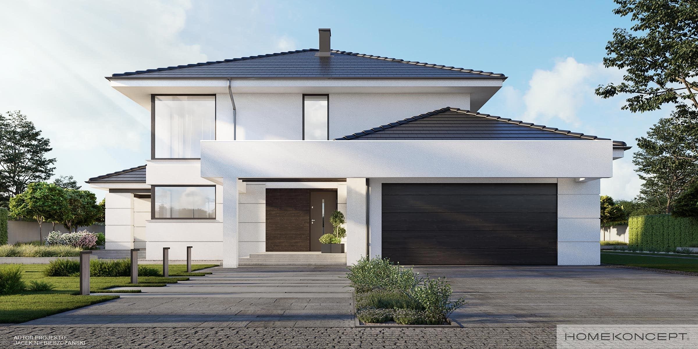 Elewacja: tynk silikonowy połączony z płytami elewacyjnymi