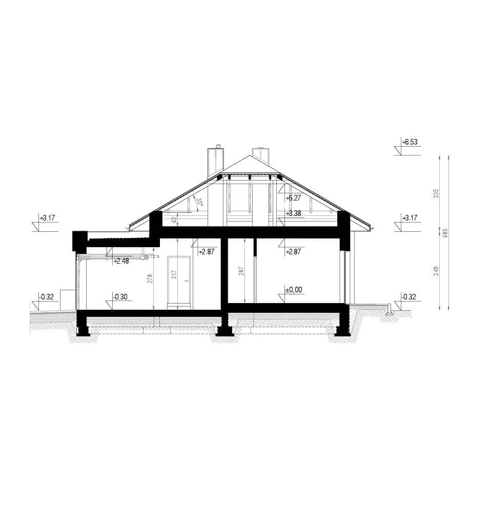 - rzut dachu i więźby dachowej,