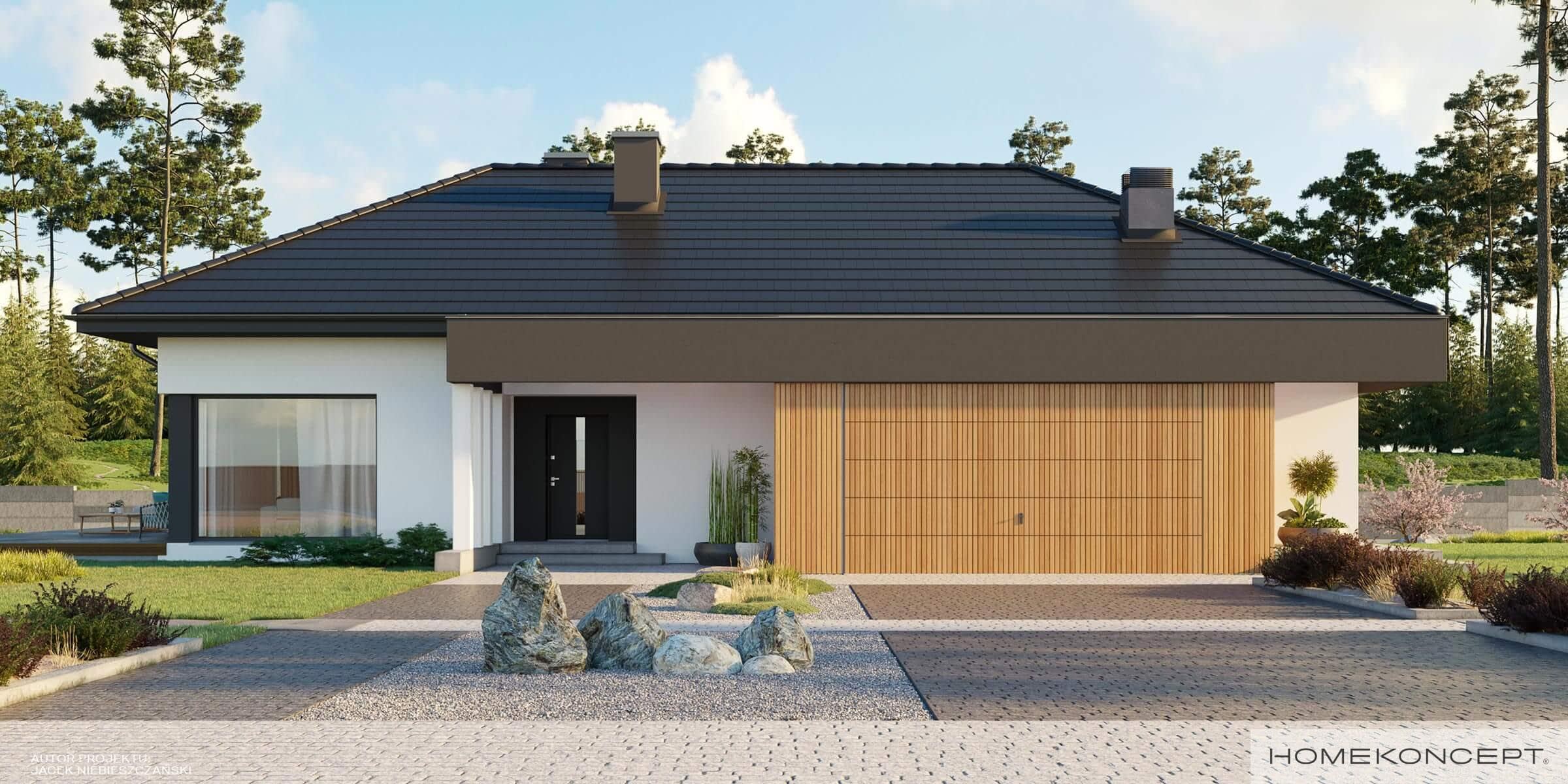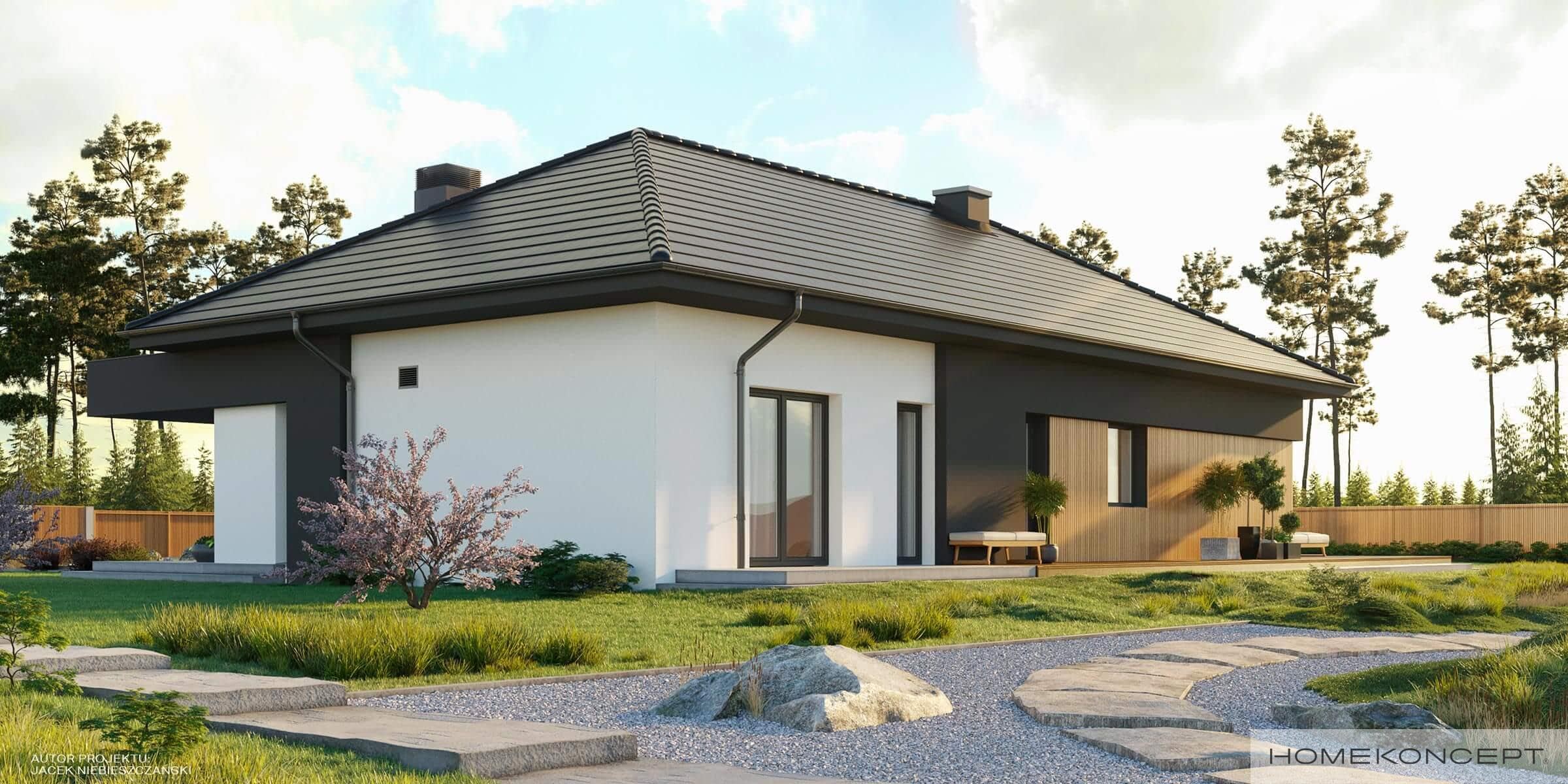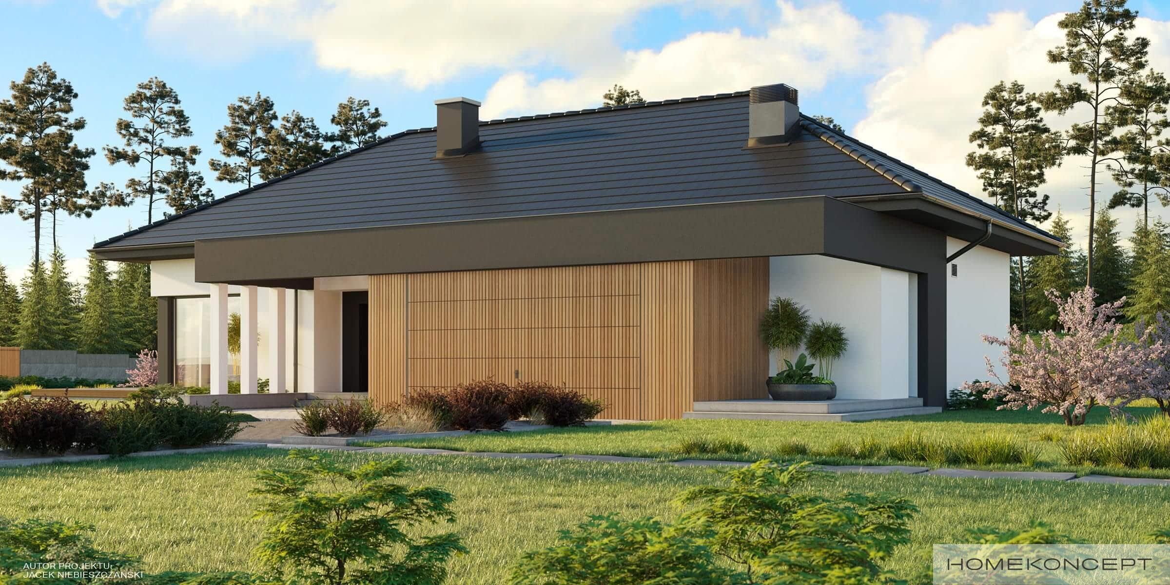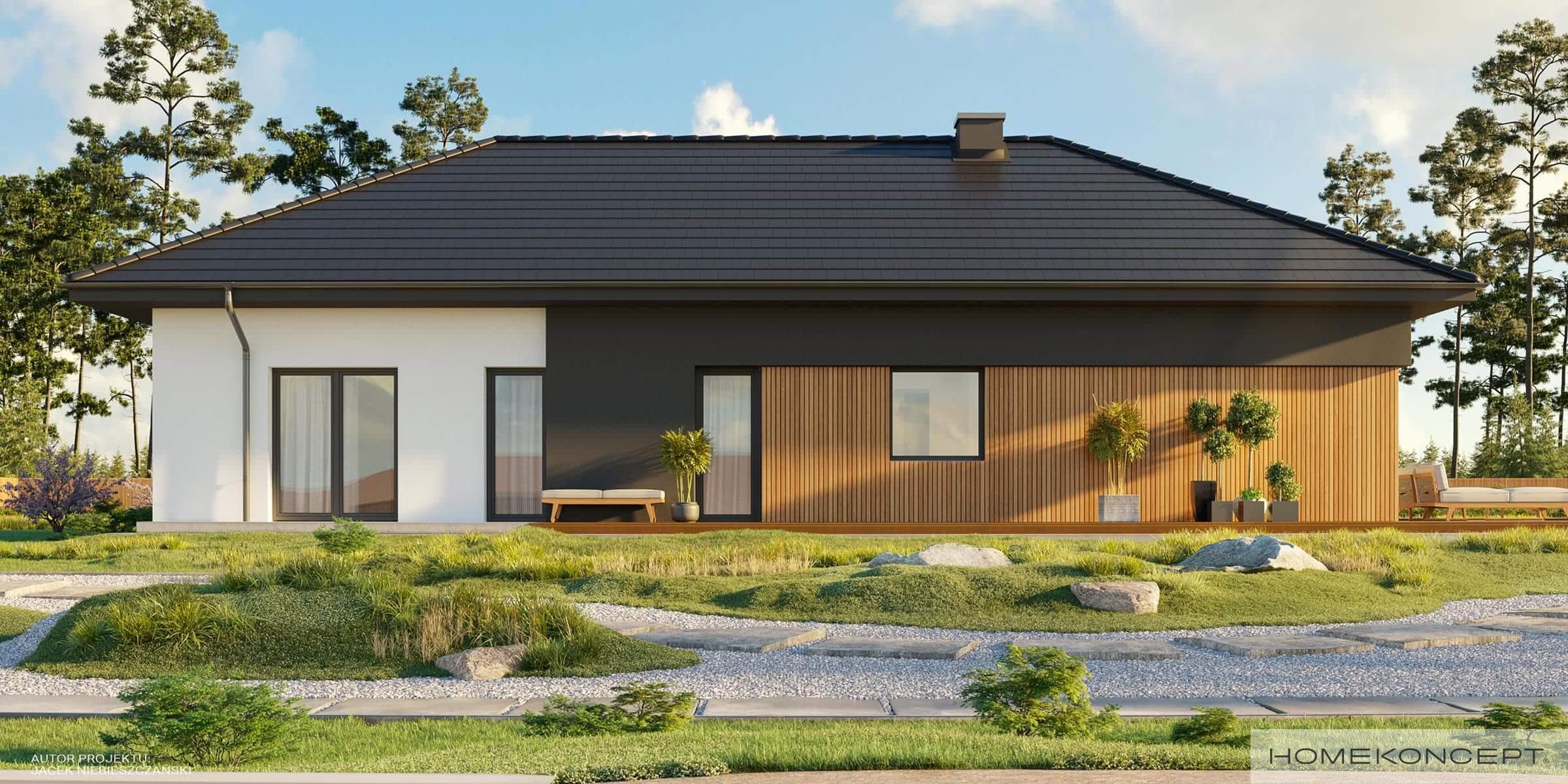 Elewacja: tynk połączony z drewnem elewacyjnym - sosna skandynawska