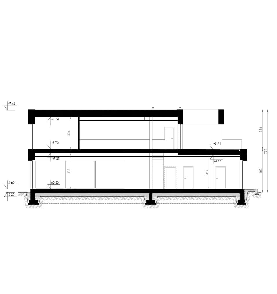- wszystkie niezbędne przekroje przez całość oraz charakterystyczne fragmenty budynku,