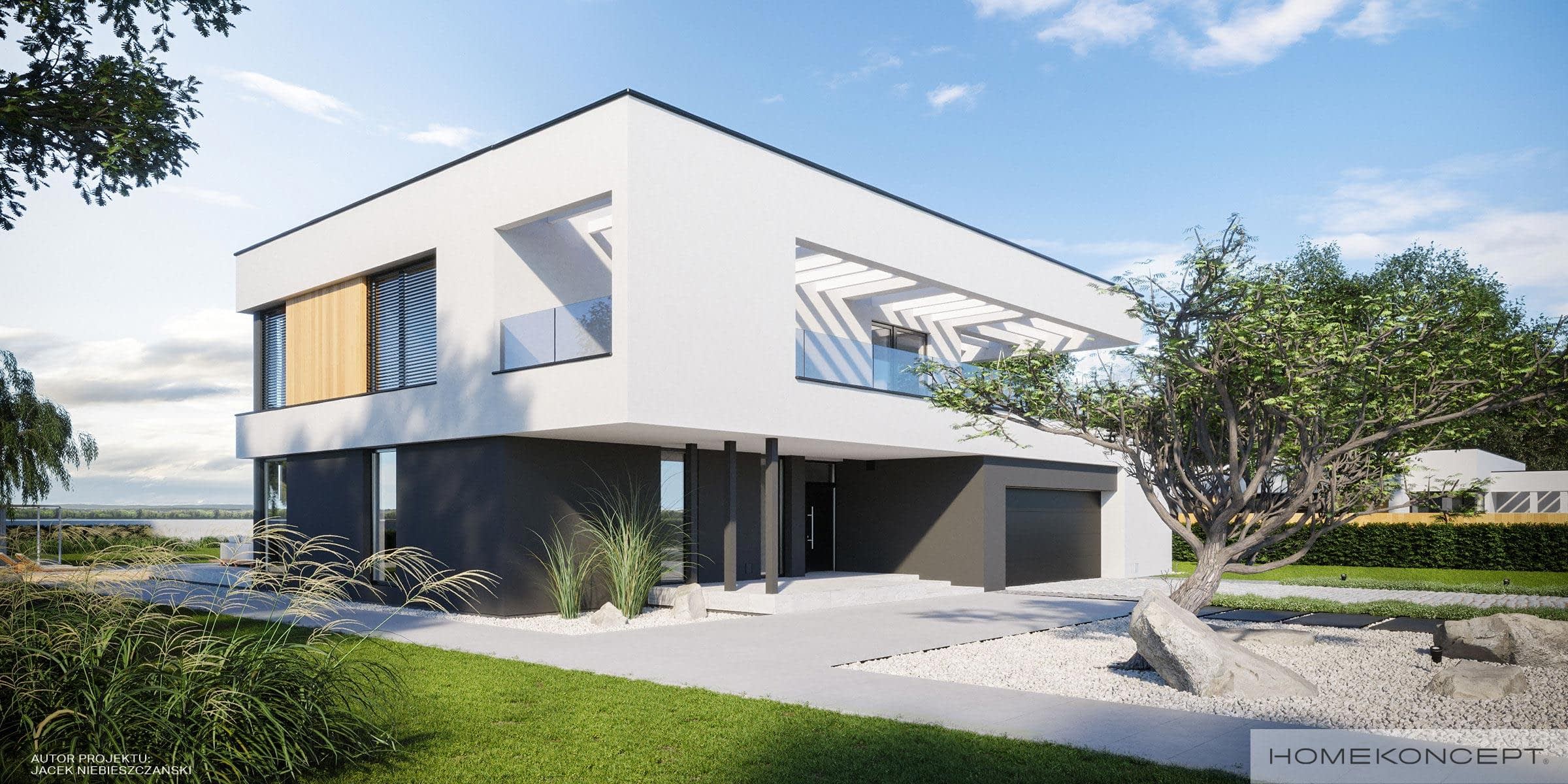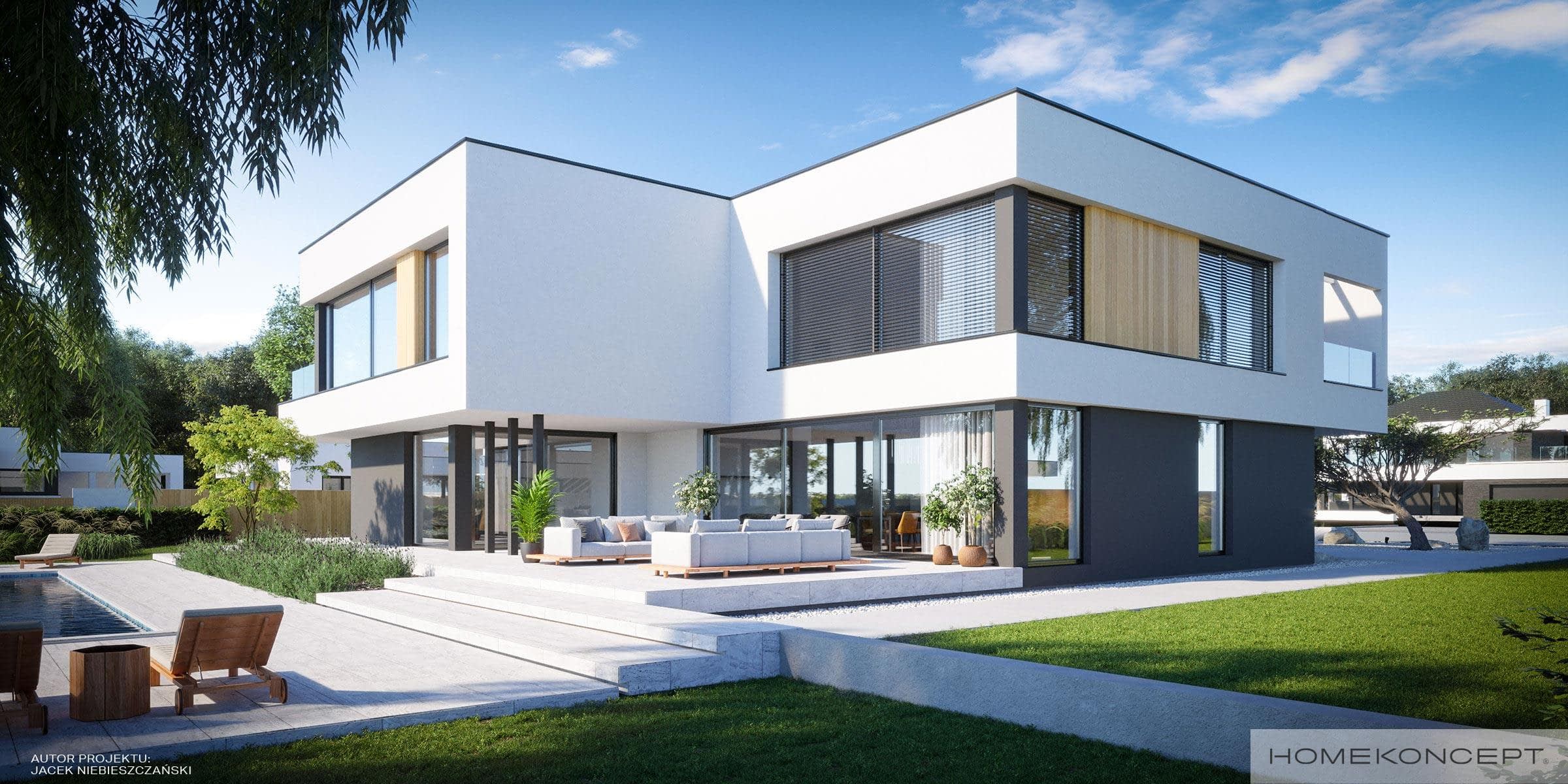 Elewacja: tynk silikonowy połączony z deską elewacyjną - modrzew syberyjski