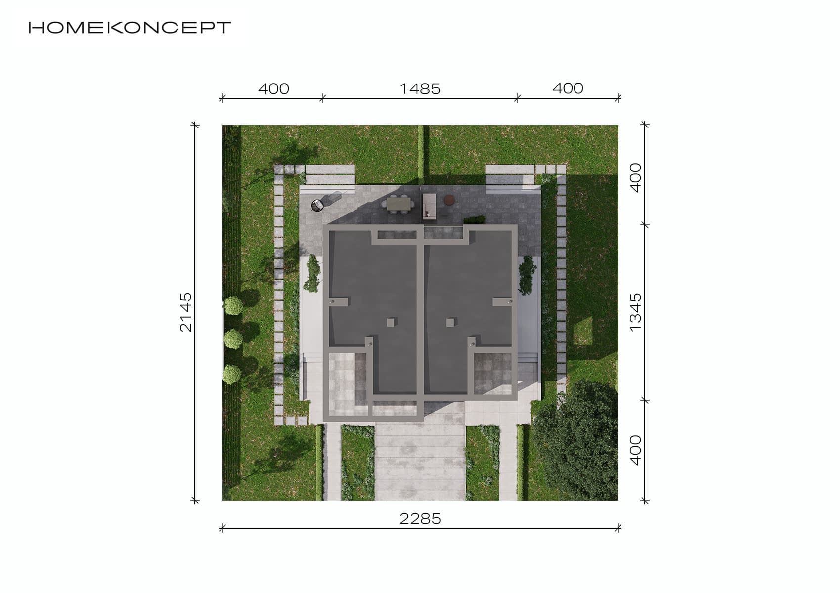 - Minimalne wymiary działki22.85 x 21.45m