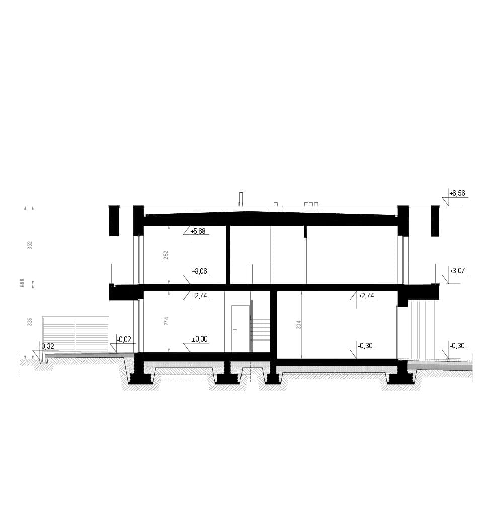 - wszystkie niezbędne przekroje przez całość oraz charakterystyczne fragmenty budynku,