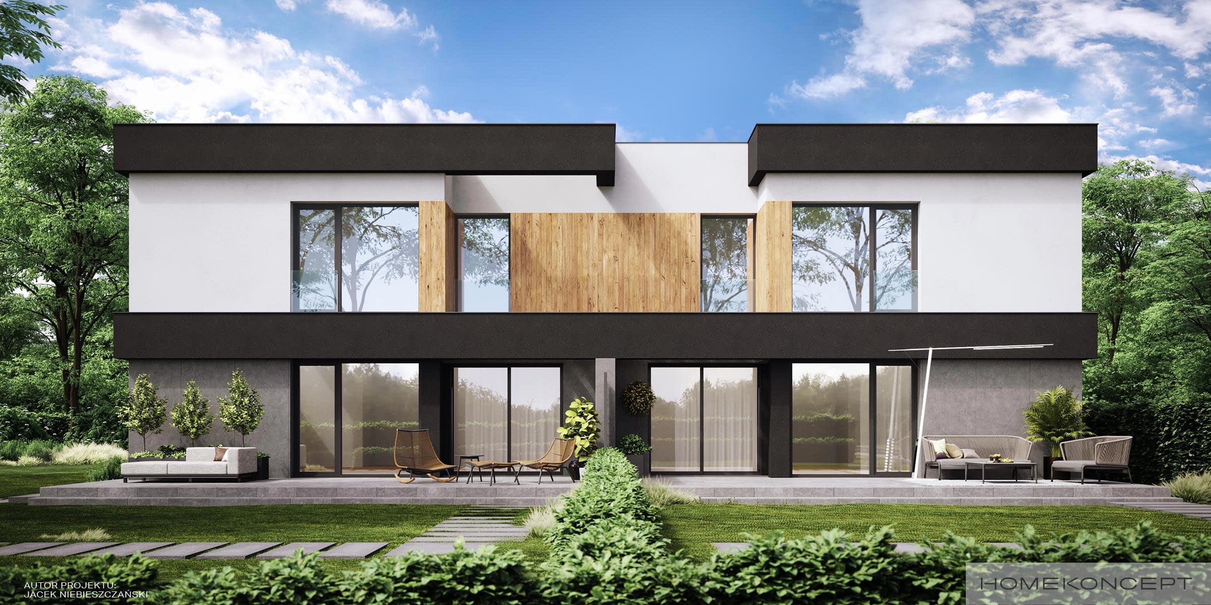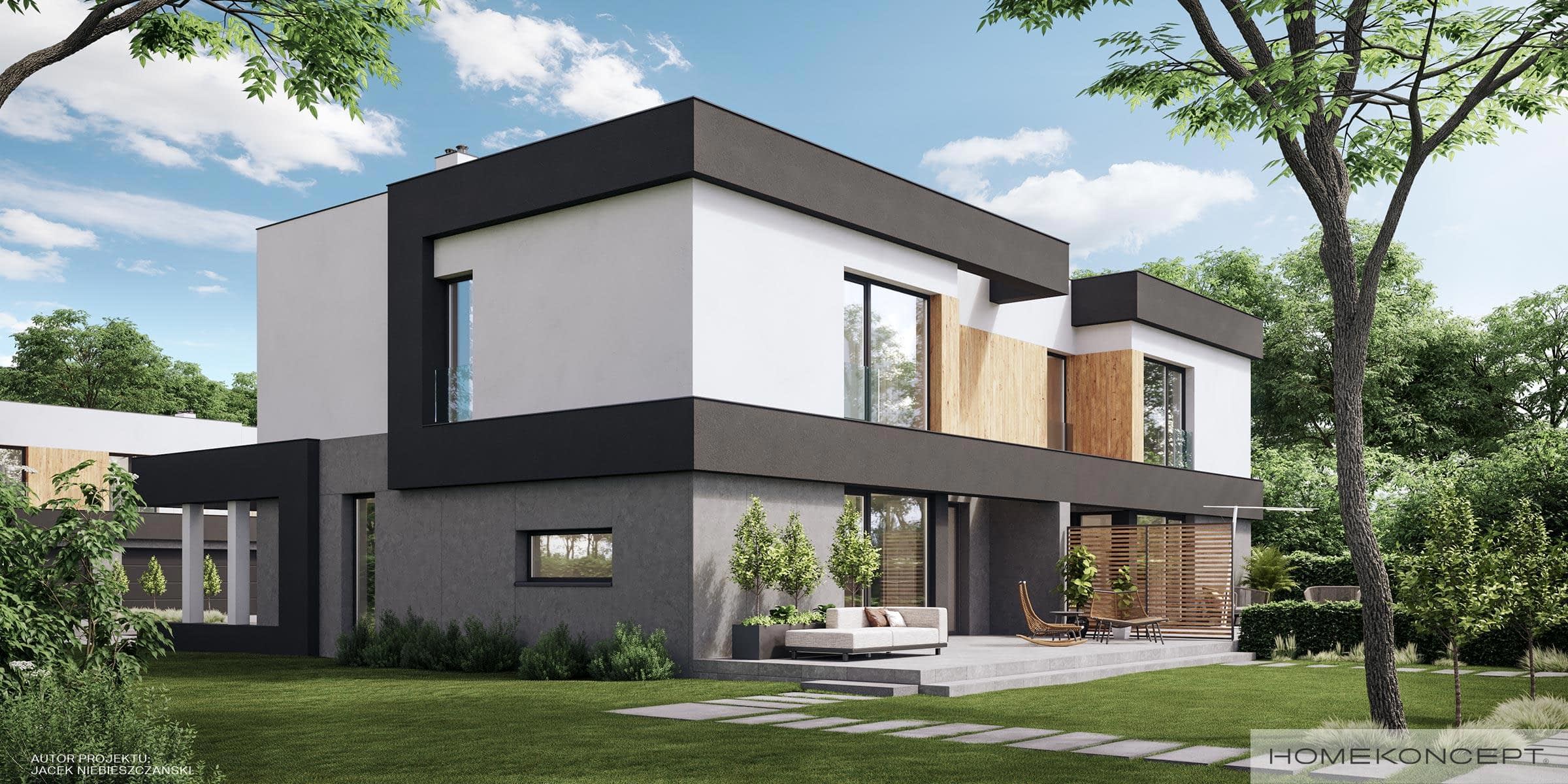 Elewacja: tynk połączony z drewnem elewacyjnym - kolor naturalny