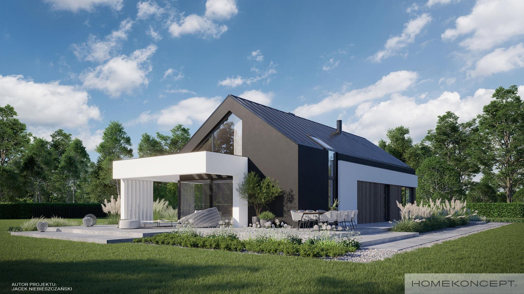 Elewacja: tynk silikonowy połączony z deskami elewacyjnymi
