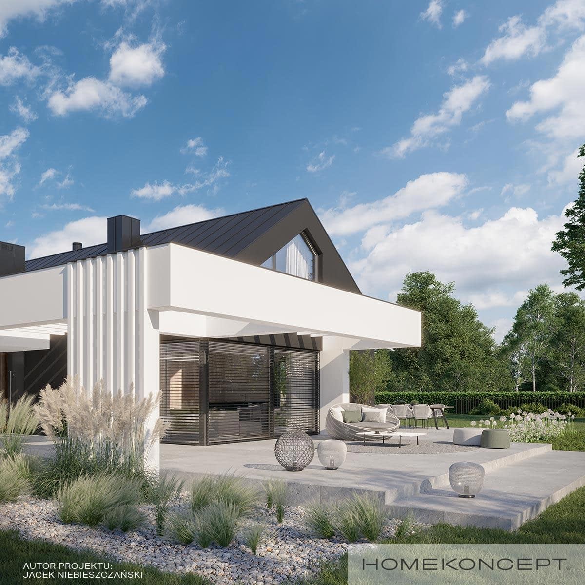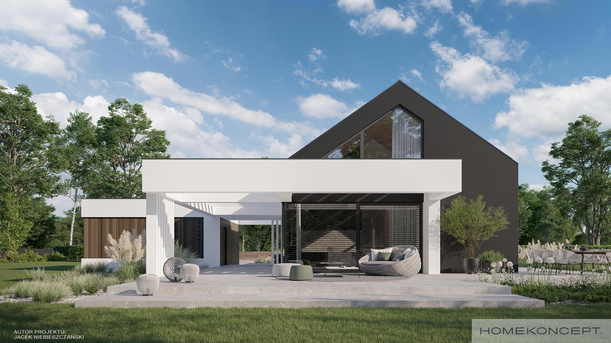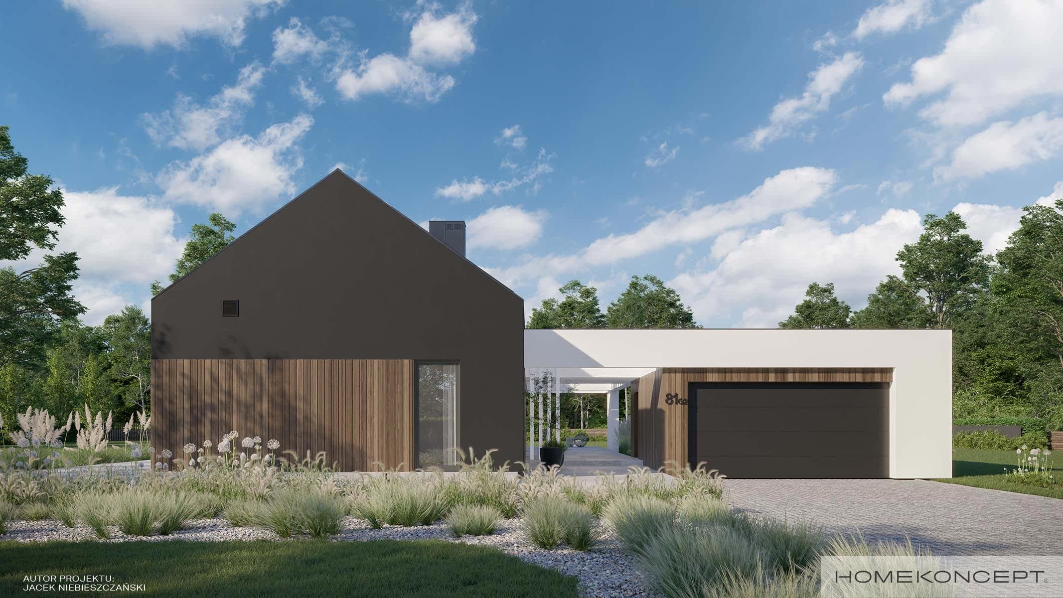 Elewacja: tynk silikonowy połączony z deskami elewacyjnymi
