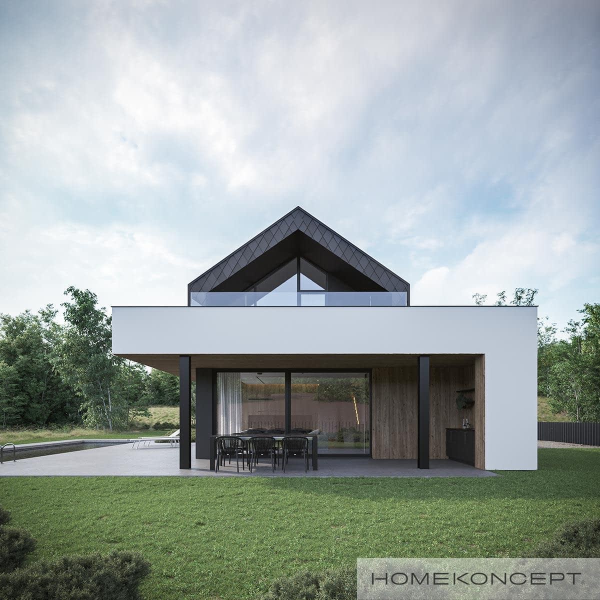 Elewacja: tynk silikonowy połączony z płytami elewacyjnymi oraz panele karo z blachy tytanowo cynkowej - krycie w stylu francuskim