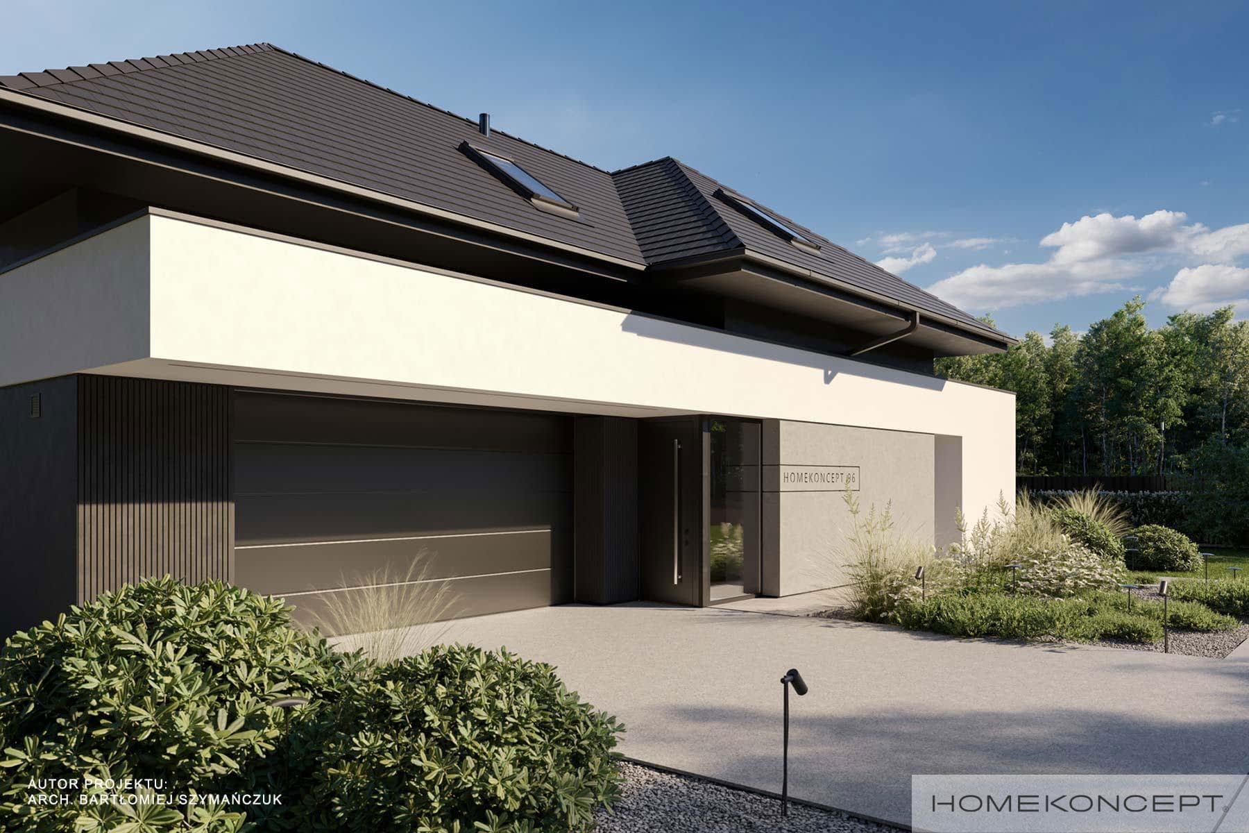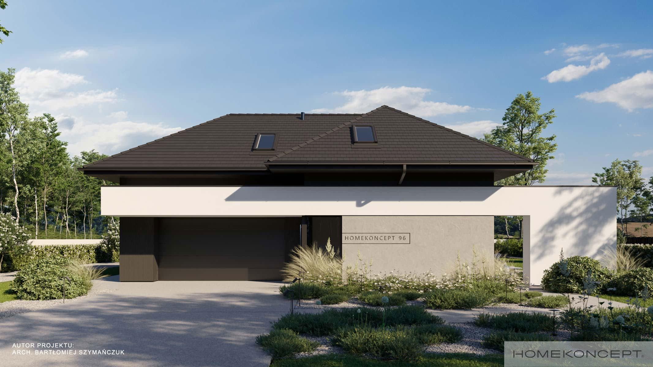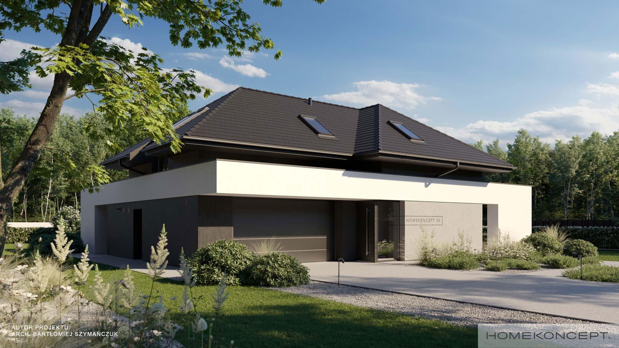 Elewacja: tynk silikonowy połączony z włókno-cementowymi płytami elewacyjnymi