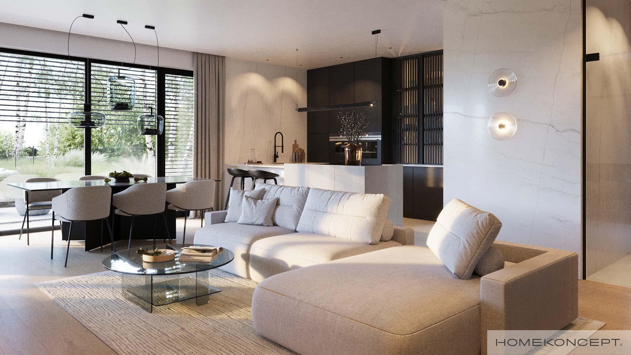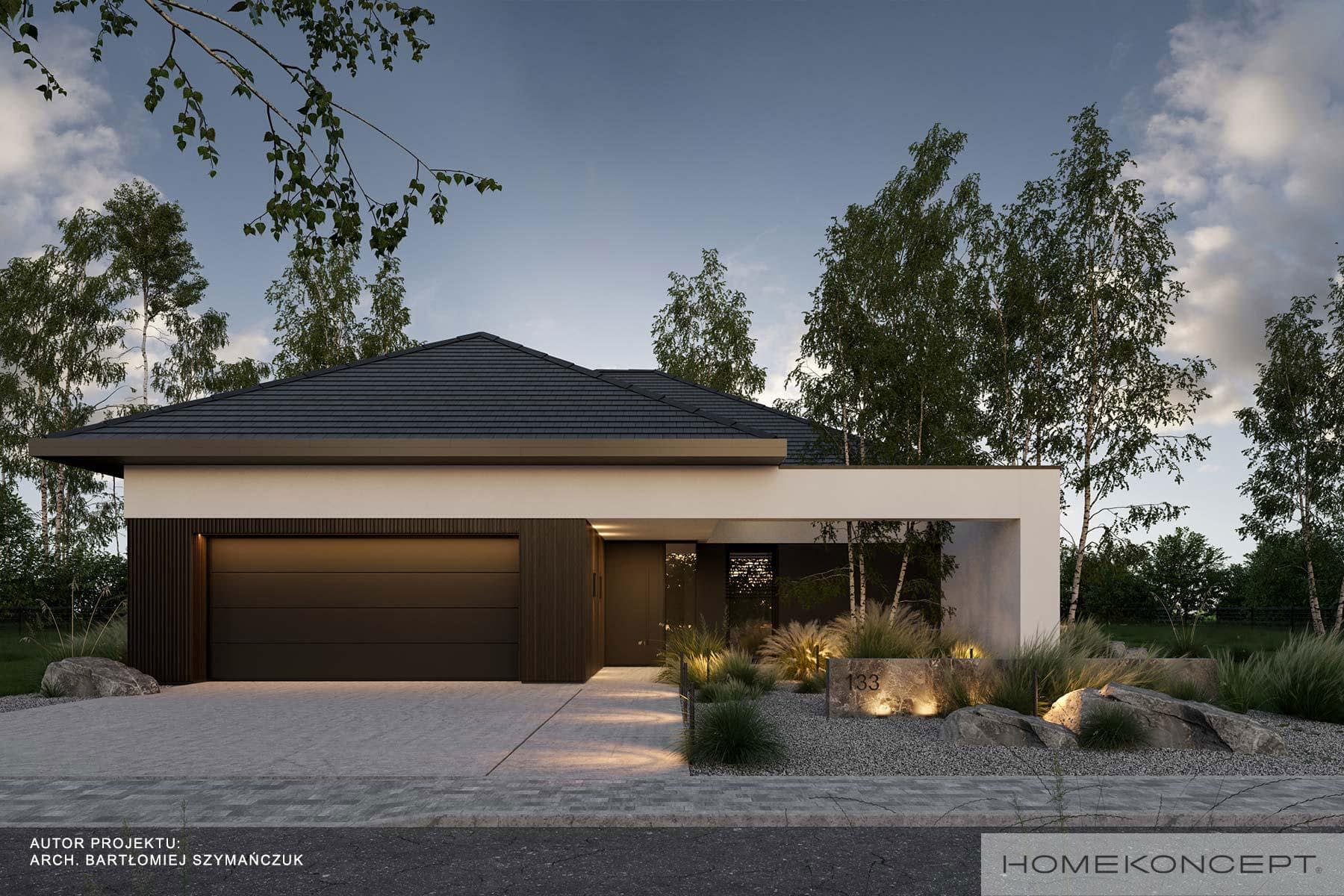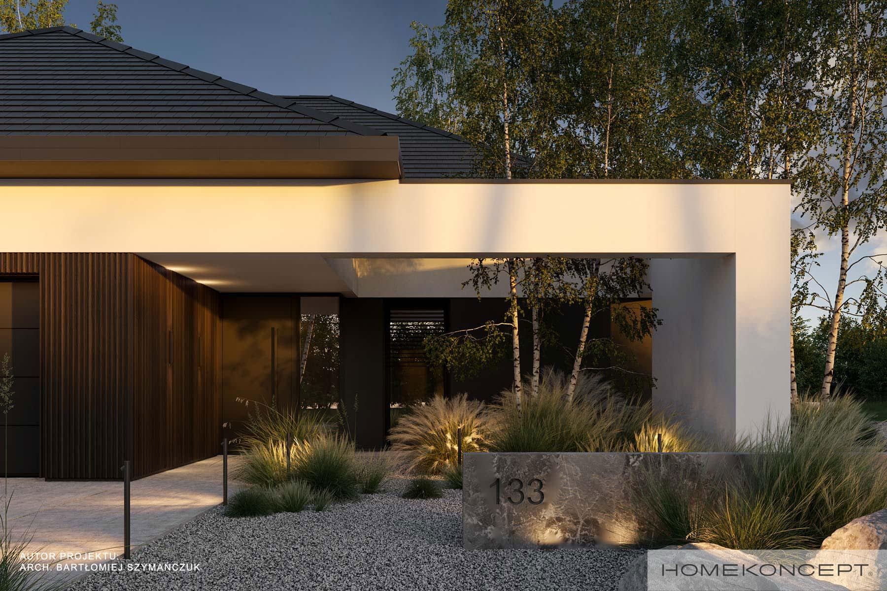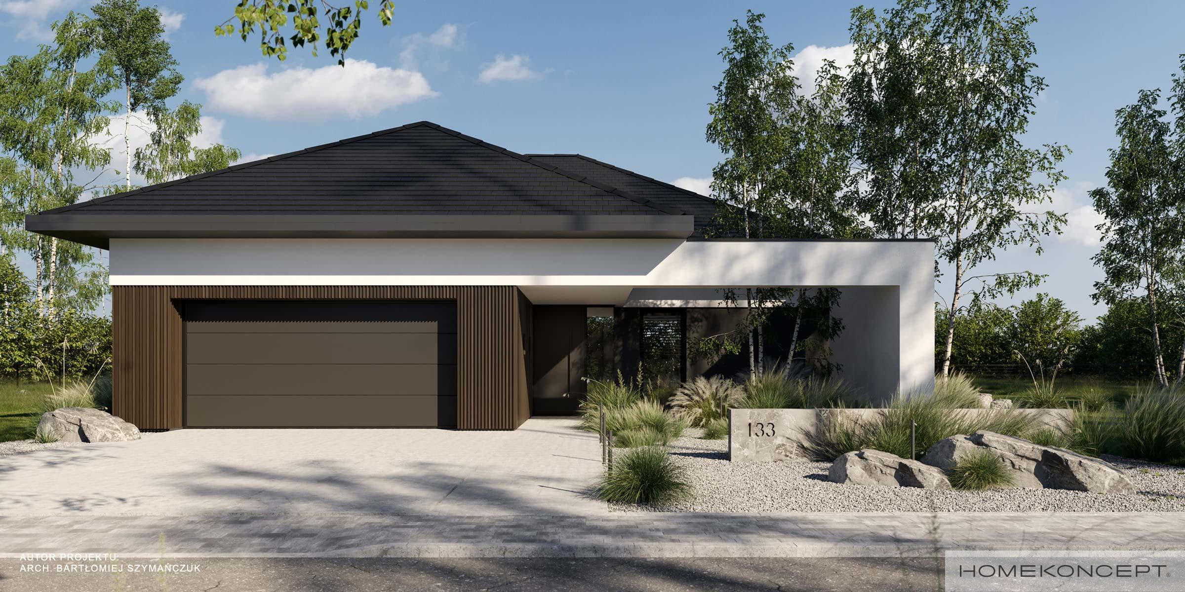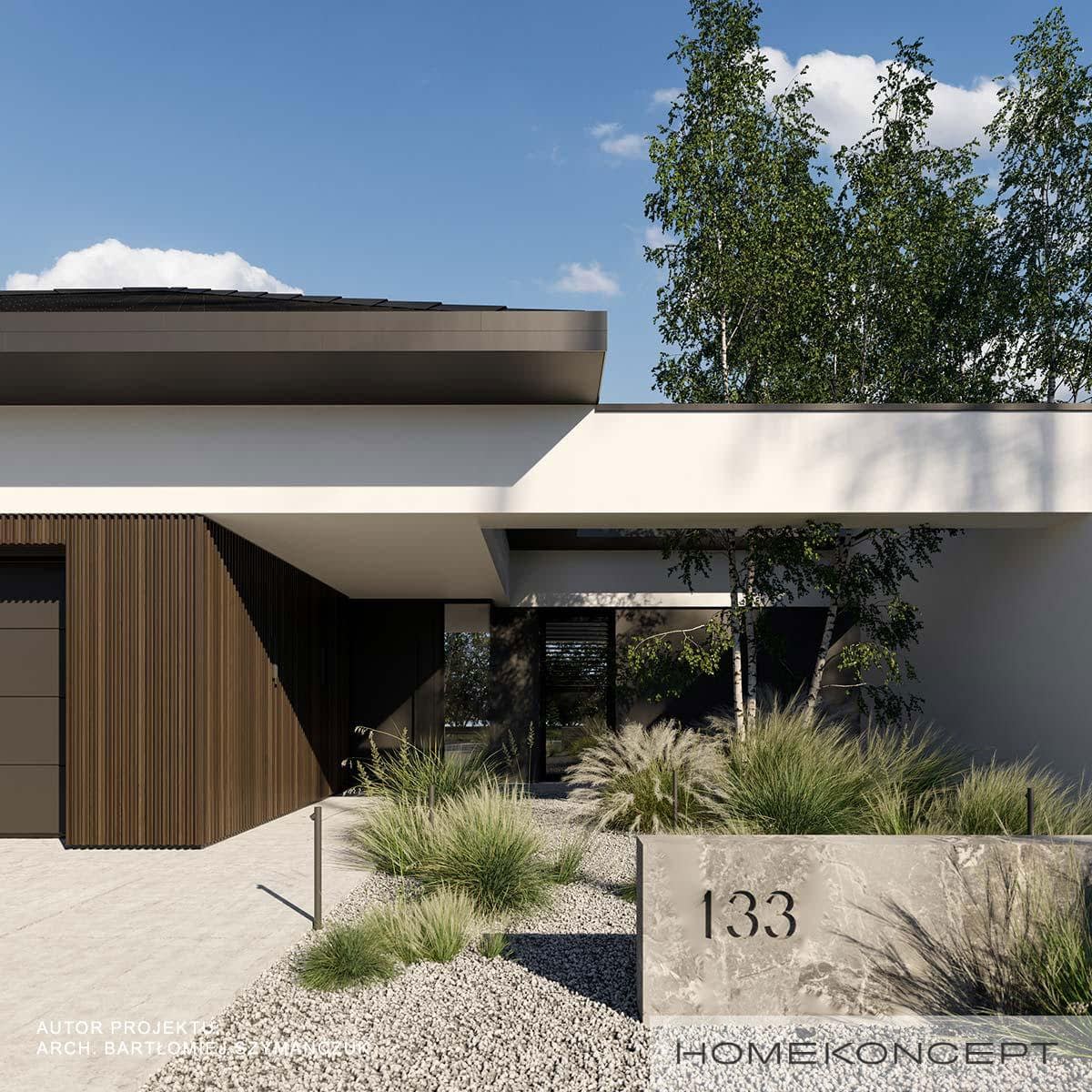 Elewacja: tynk silikonowy połączony z panelami lamelowymi