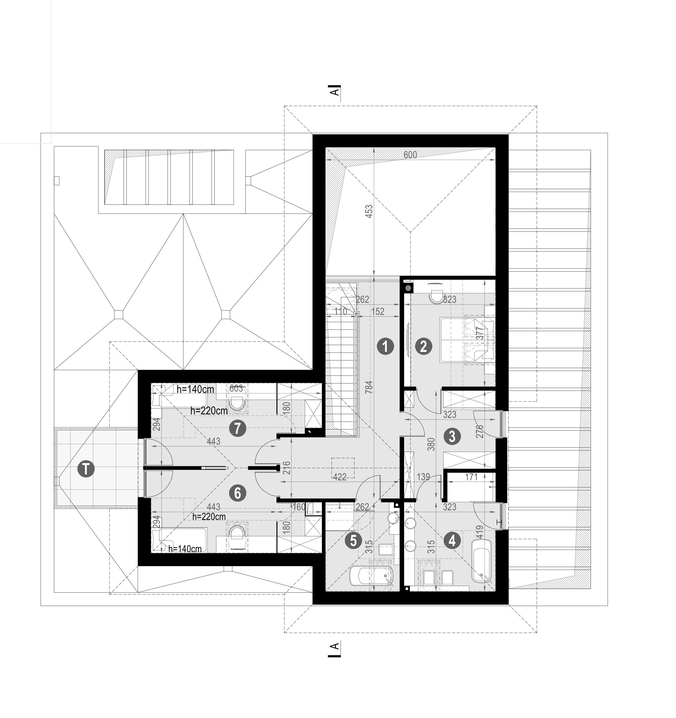 - rzut dachu i więźby dachowej,