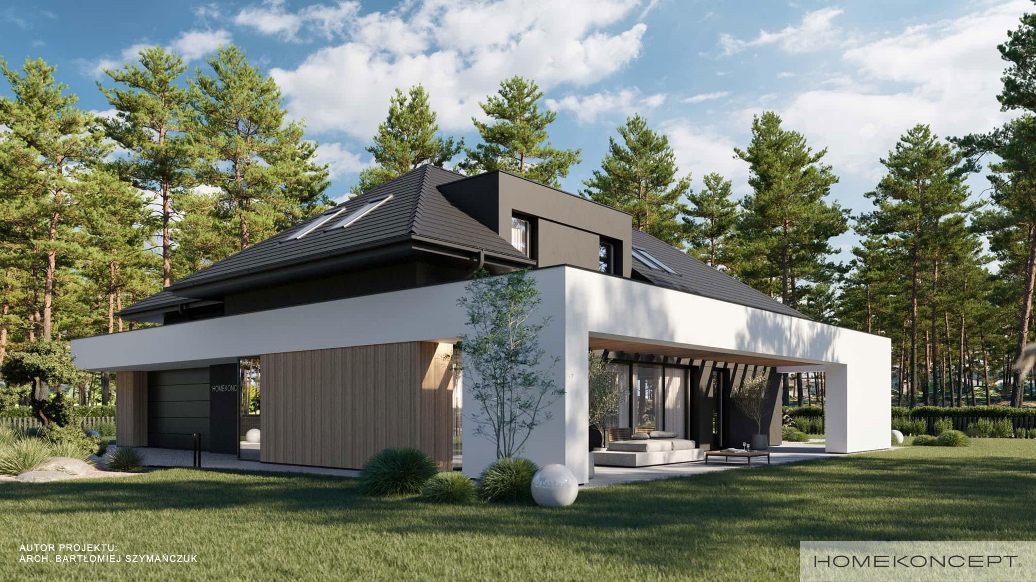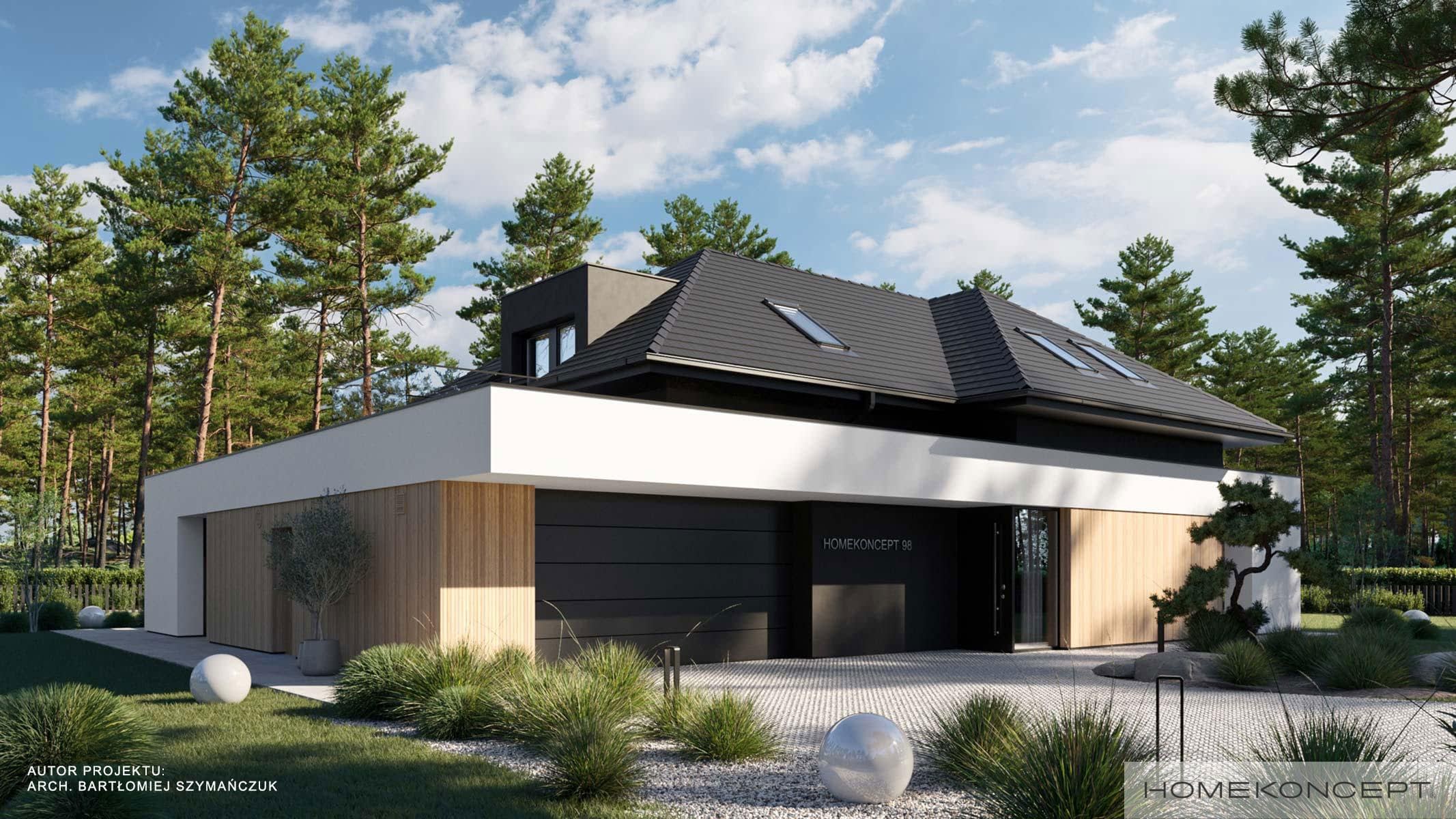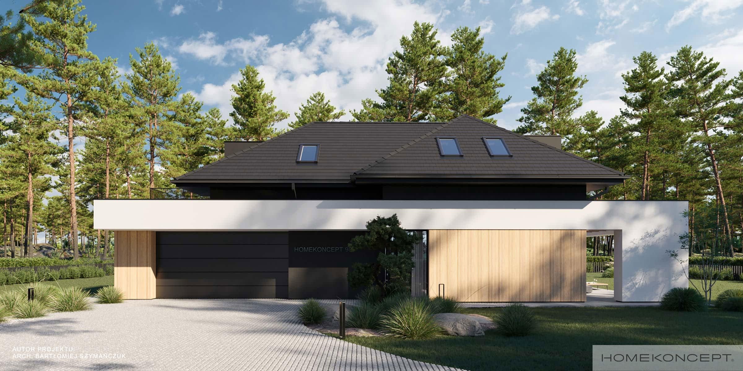 Elewacja: tynk silikonowy połączony z drewnem elewacyjnym