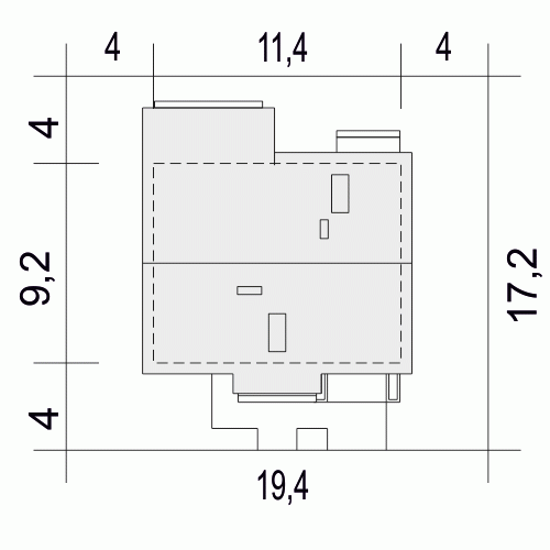 - Minimalne wymiary działki17.2 x 19.4m