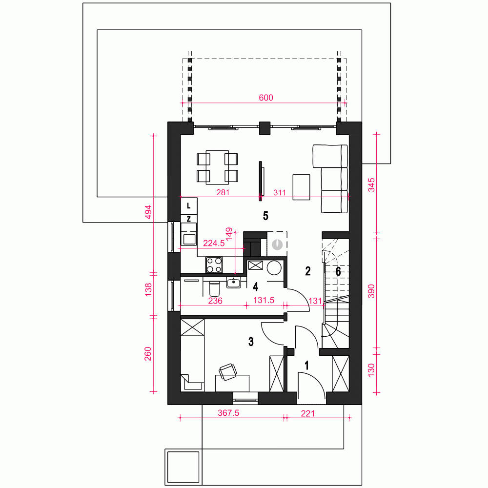 Projekt w fazie koncepcji dostępny z wydłużonym terminem realizacji. Przy zamówieniu ustalamy termin i pobieramy zadatek 50% podstawowej ceny projektu (jako koszty usługi przygotowania dokumentacji do standardu projektu gotowego, w przypadku rezygnacji z usługi, zadatek nie podlega zwrotowi).