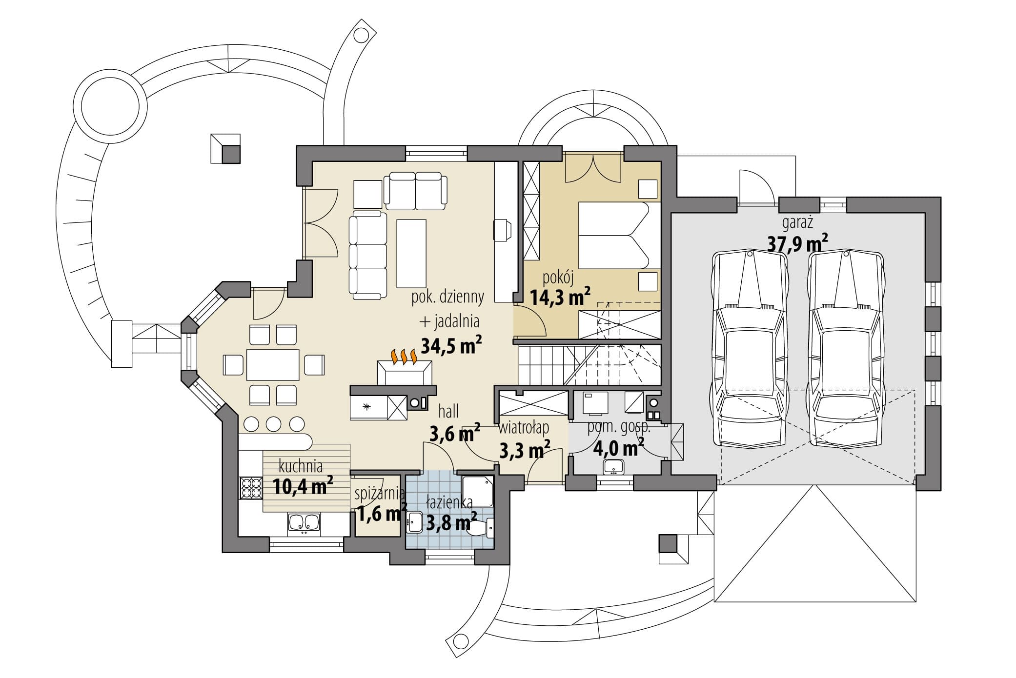 - KondygnacjeParterowy, z poddaszem
