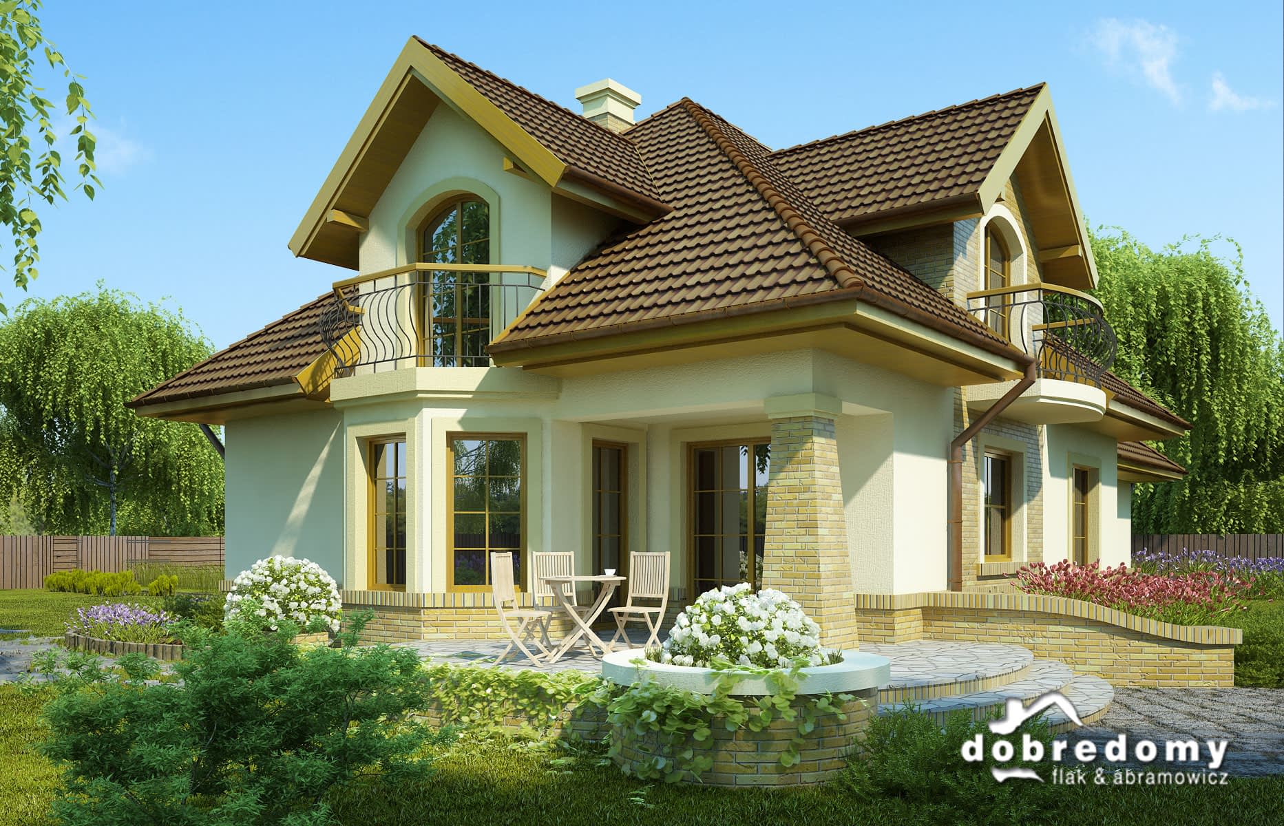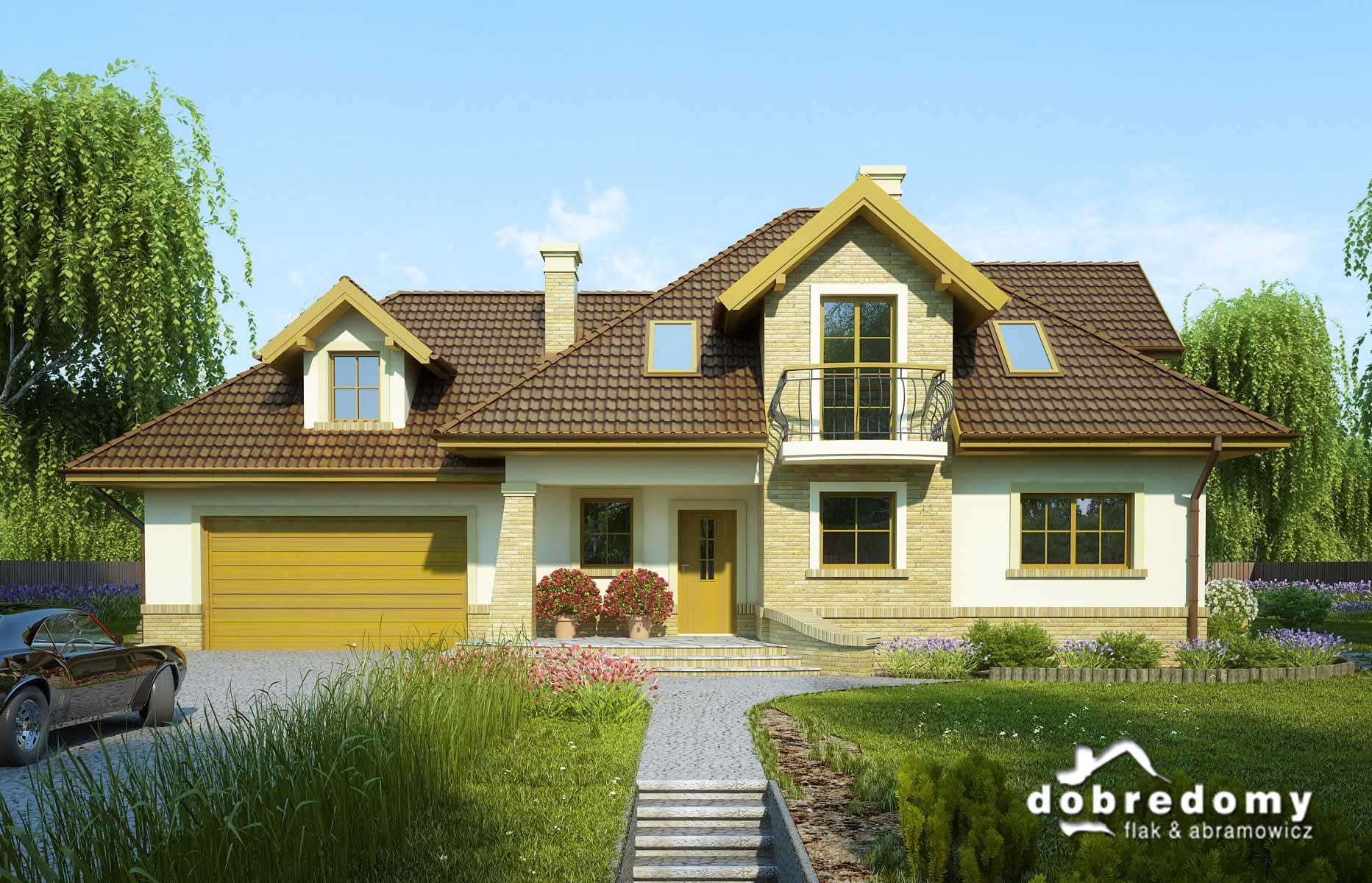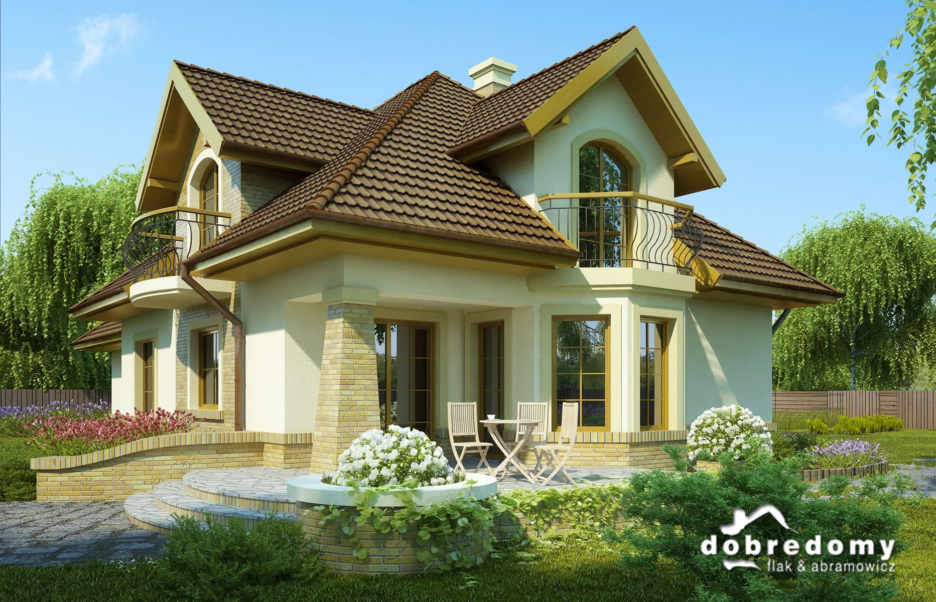 - Kolorystyka elewacji, detali dekoracyjnych, kształtu podjazdów i tarasów.