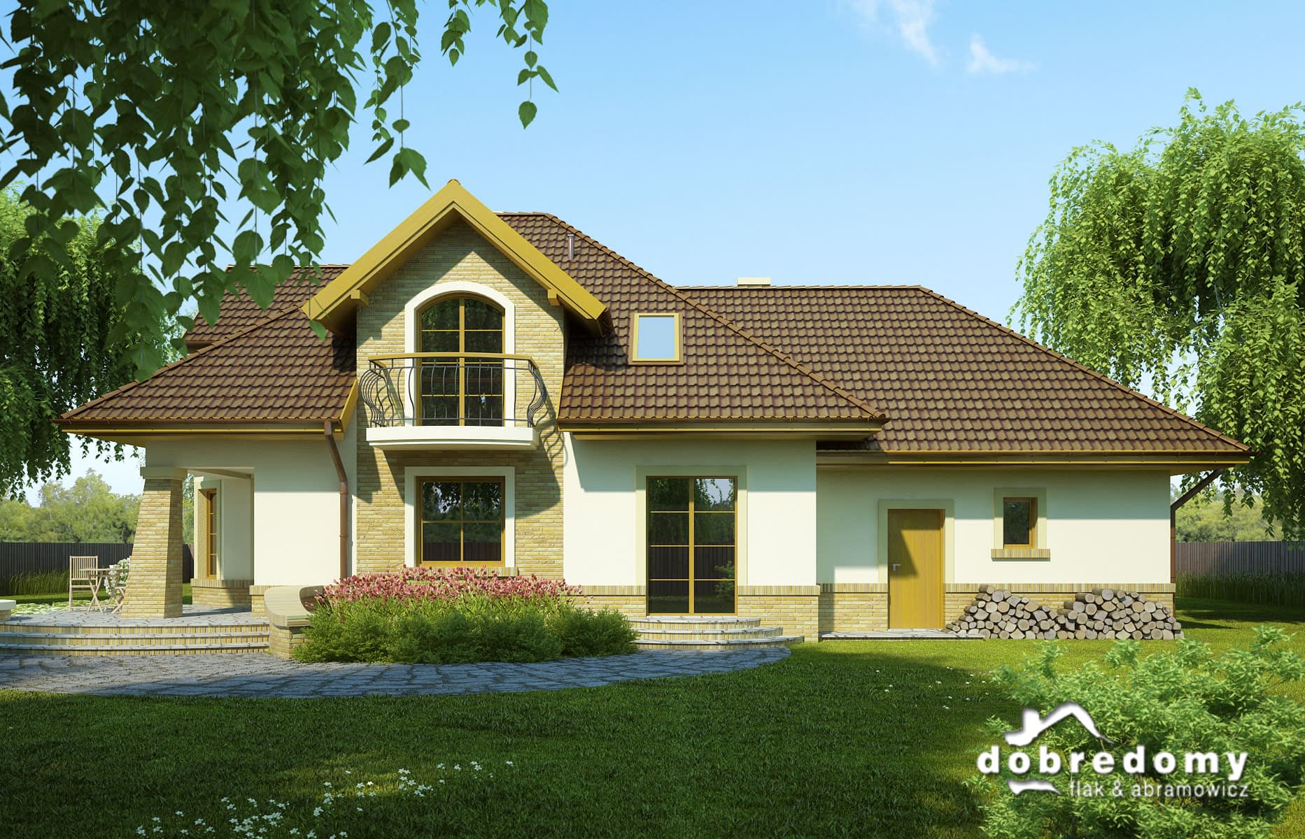 Elewacje pokryte tynkiem strukturalnym w systemie ociepleń Termo Organika oraz okładziną klinkierową. W projekcie zastosowano okna dachowe marki FAKRO. Pokrycie dachu - dachówka ceramiczna lub cementowa CREATON.