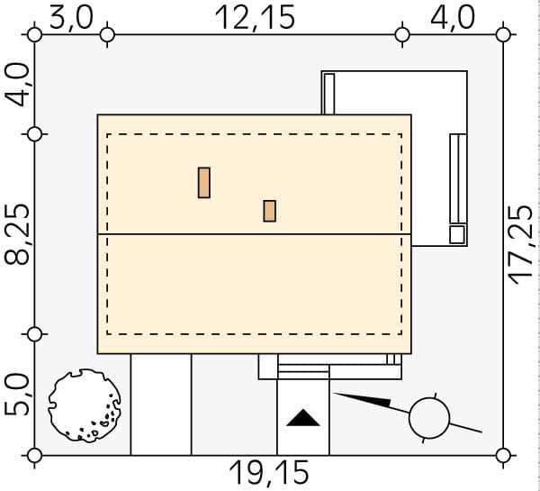 - Minimalne wymiary działki17.25 x 19.15m