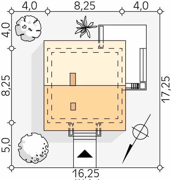 - Minimalne wymiary działki17.25 x 16.25m