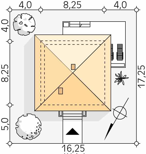 - Minimalne wymiary działki17.25 x 16.25m