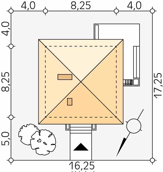 - Minimalne wymiary działki17.25 x 16.25m