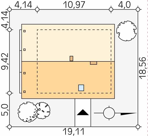 - Minimalne wymiary działki17.42 x 19.11m