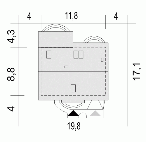 - Minimalne wymiary działki17.1 x 19.8m