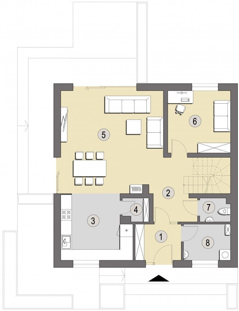 - Wprowadzenie całkowitego lub częściowego podpiwniczenia budynku - pod warunkiem nie przekroczenia poziomu posadzki na parterze o 50 cm ponad poziom terenu.
