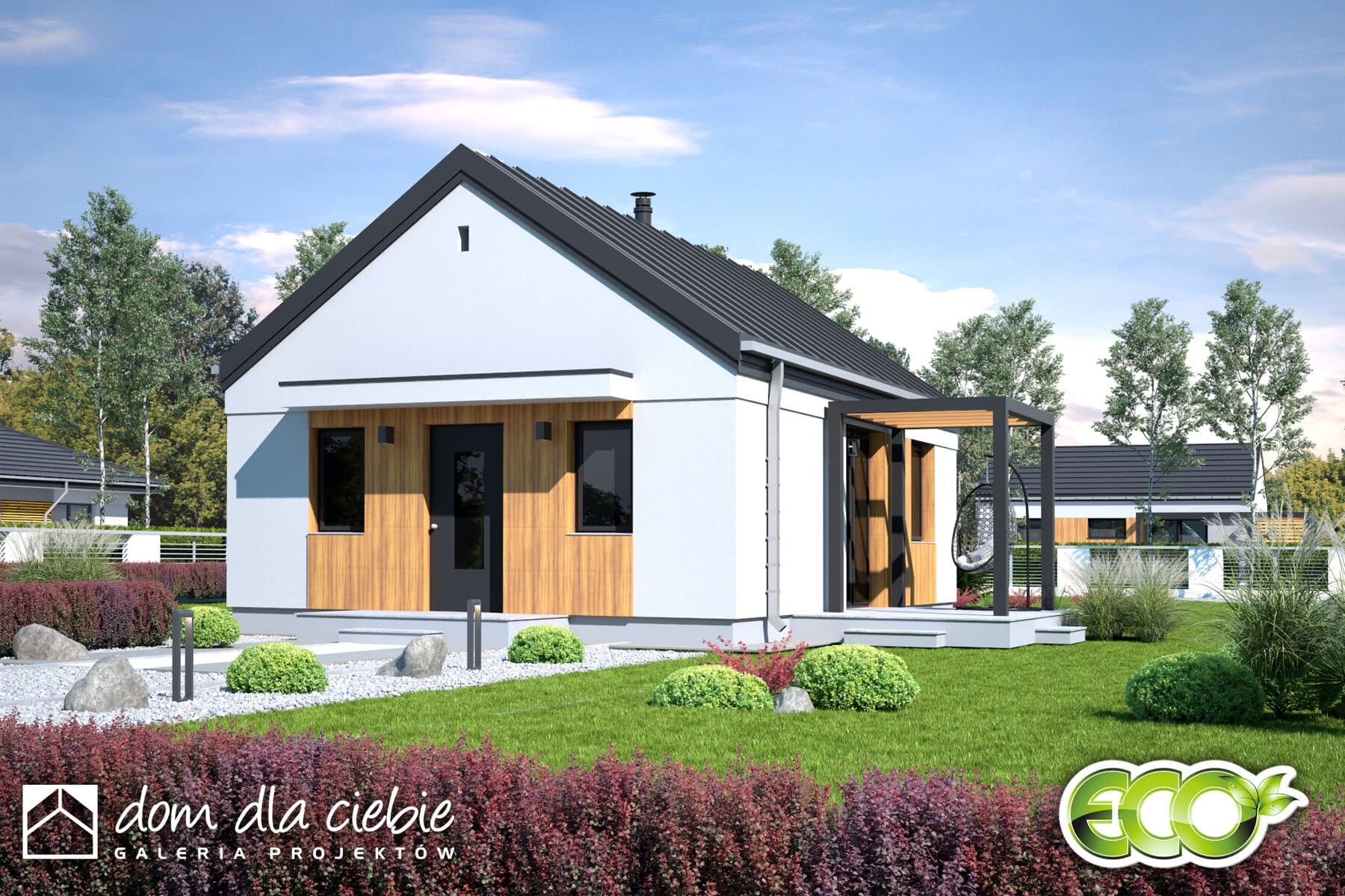 Iwo to niewielki projekt domu przeznaczony dla 2-3 osób, bez garażu.