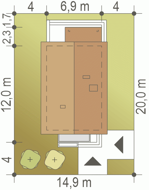 - Minimalne wymiary działki20 x 14.9m