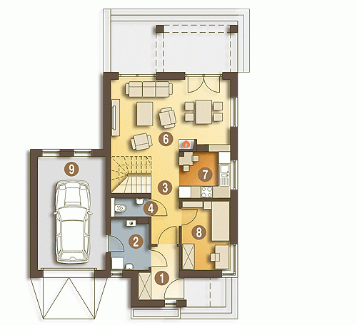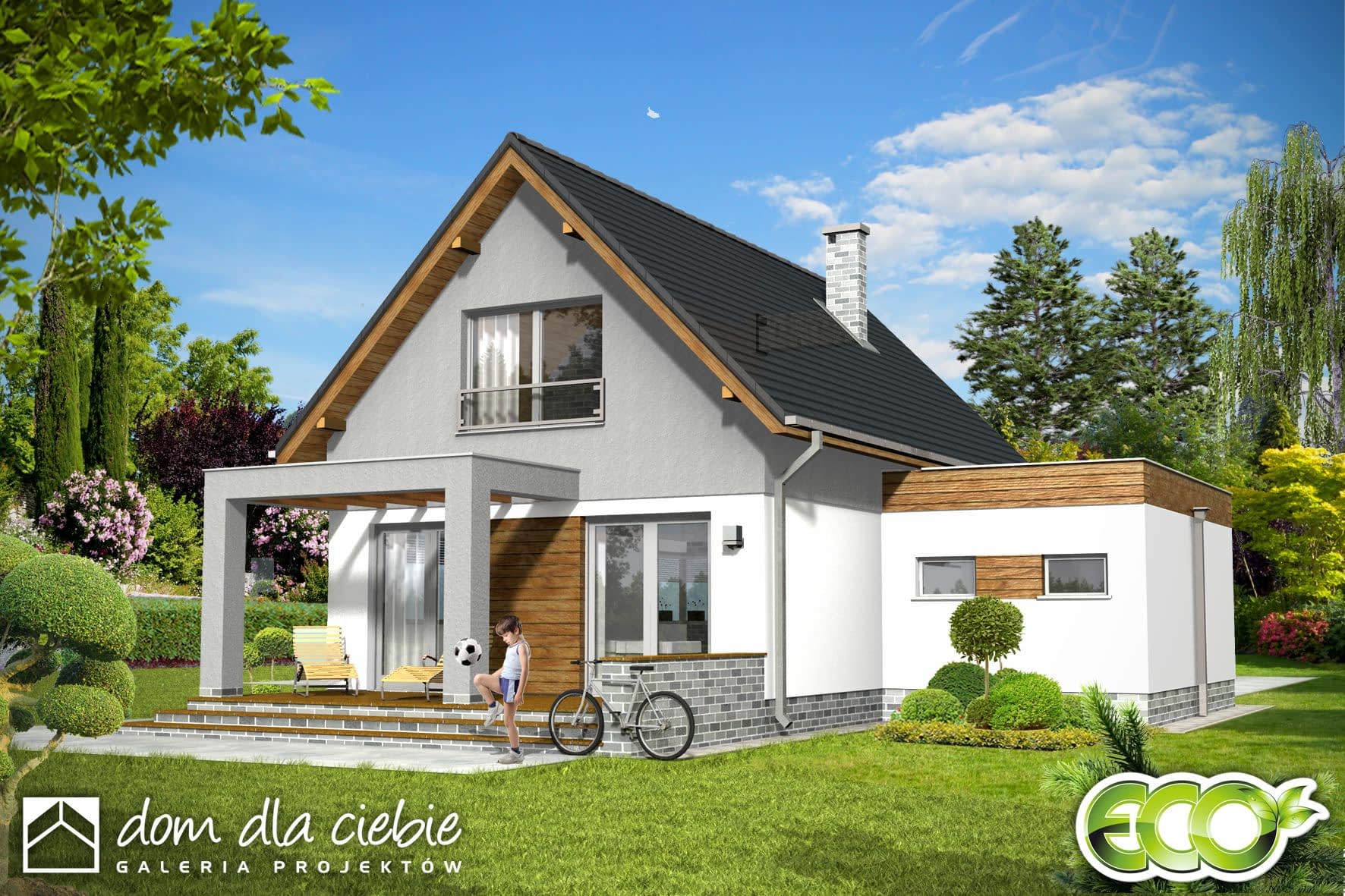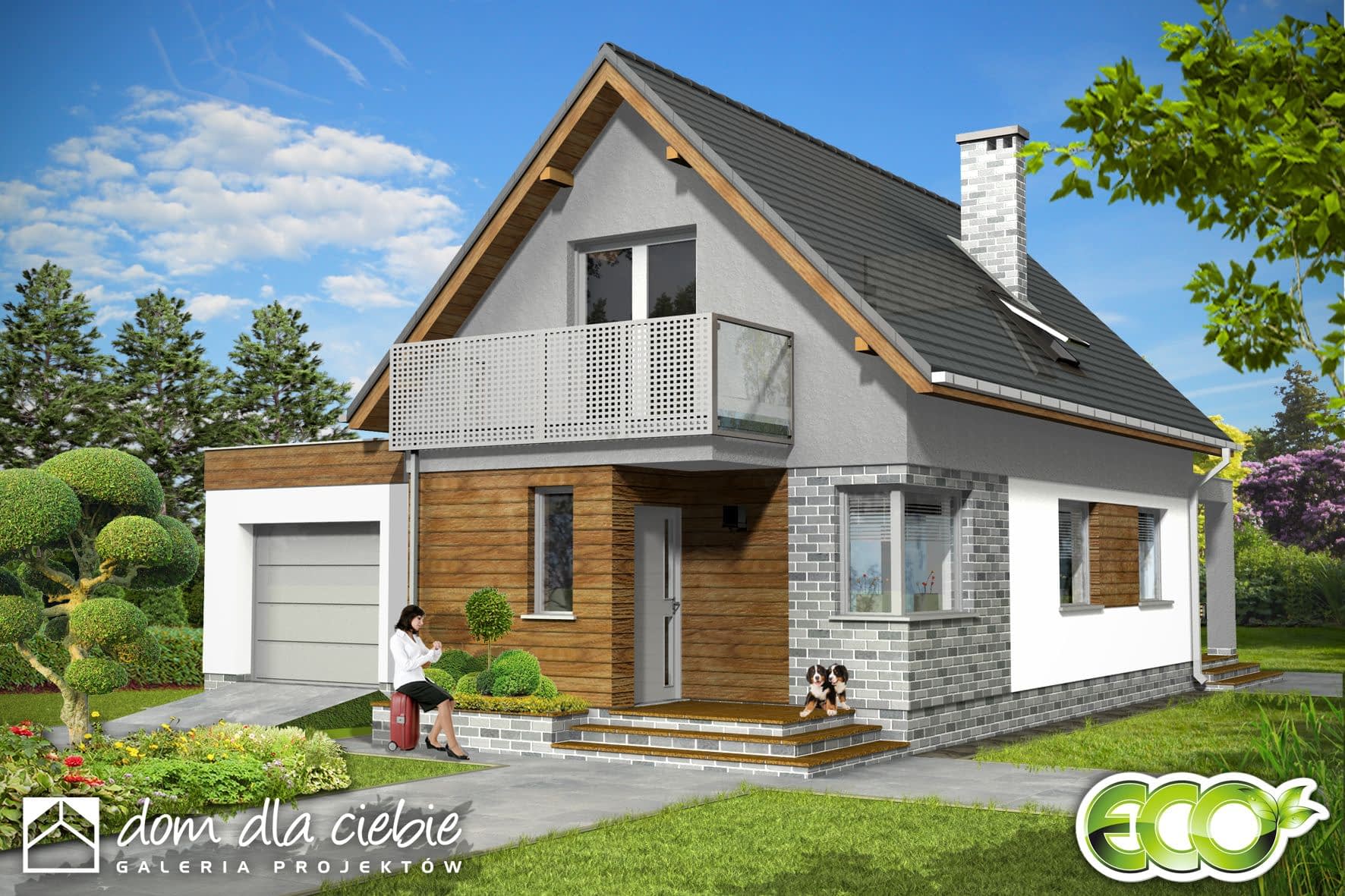 Projekt Iza w nowoczesnej odsłonie i o ekonomicznych rozwiązaniach. Zgrabny, niewielki dom jednorodzinny, zaprojektowany na wąską działkę, dla 4 osobowej rodziny, nadający się na dom całoroczny lub letniskowy. Drzwi wejściowe chronione są przed opadami funkcjonalnym podcieniem, natomiast jedno z wyjść tarasowych z p. dziennego prowadzi pod przestronną pergolę, którą można z powodzeniem przeprojektować na pełne zadaszenie. Z wiatrołapu dostępne jest pom. gospodarcze z piecem C.O., poprzez które wchodzi się do garażu. Kuchnię, w zależności od upodobań inwestorów, można pozostawić otwartą lub zamknąć ściankami działowymi. Na poddaszu zaprojektowano 2 niewielkie sypialnie, jedną większą z wewnętrzną garderobą oraz łazienkę. Wszystkie pomieszczenia, w wersji bez garażu, doświetlone są światłem dziennym.