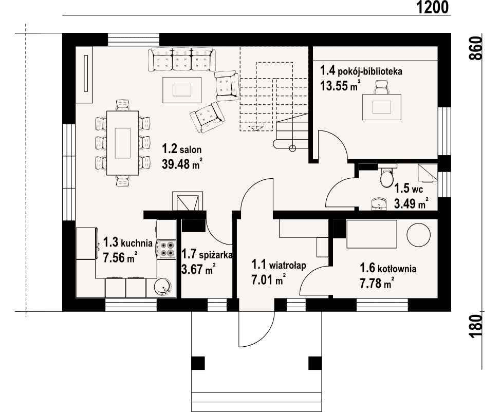 - 1.4 - pokój-biblioteka13.55 m²
