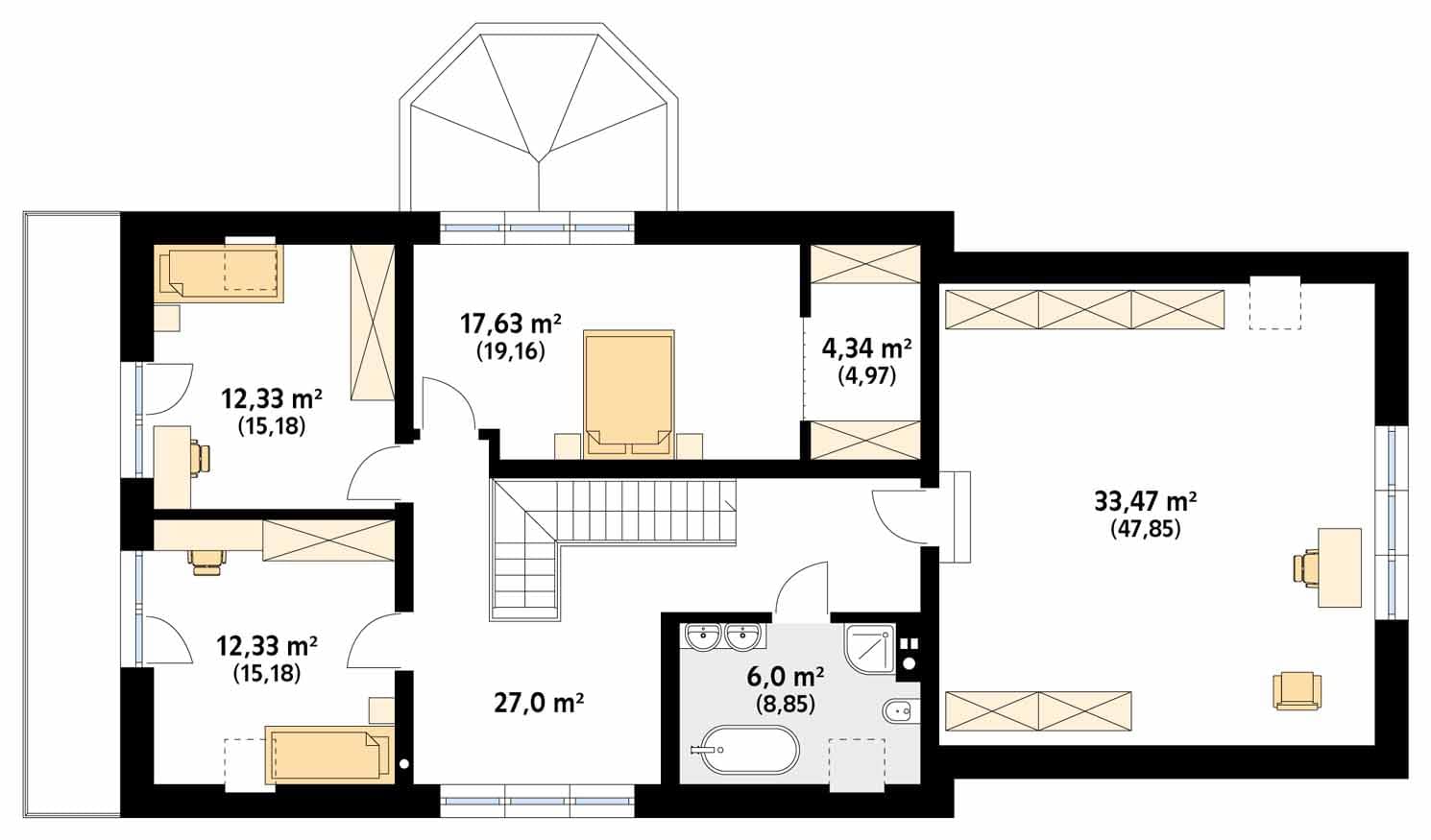 Projekt domu JAGODOWY 3 to propozycja dla osób poszukujących nieszablonowych rozwiązań, zafascynowanych amerykańską stylistyką i dążących do realizacji ich własnego "american dream". Projekt charakteryzuje spora powierzchnia użytkowa, która wynosi ponad 200 m². Dom jest idealny dla 5-6cio osobowej rodziny.Konstrukcja