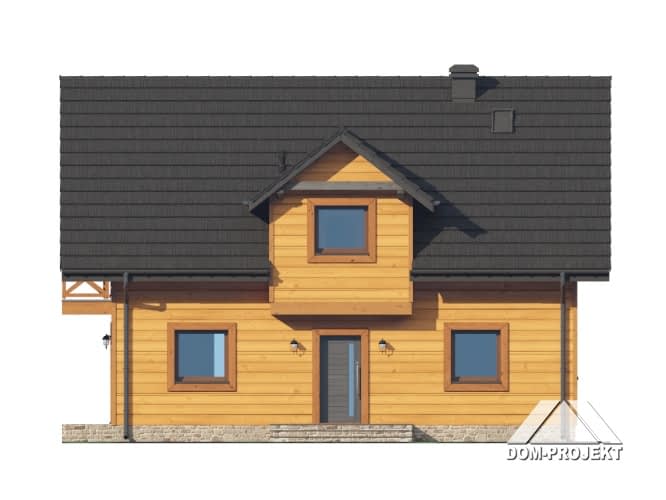 Dom w konstrukcji szkieletu drewnianego. Na parterze salon z aneksem kuchennym, wyjściem na taras i schodami na poddasze. Pokój, łazienka, kotłownia, wiatrołap. Na poddaszu cztery pokoje, korytarz, łazienka, balkon dostępny z dwóch pokoi. Zwarta bryła budynku oraz dach dwuspadowy sprzyjają szybkiej i taniej budowie oraz niskim kosztom eksploatacji.Rzuty