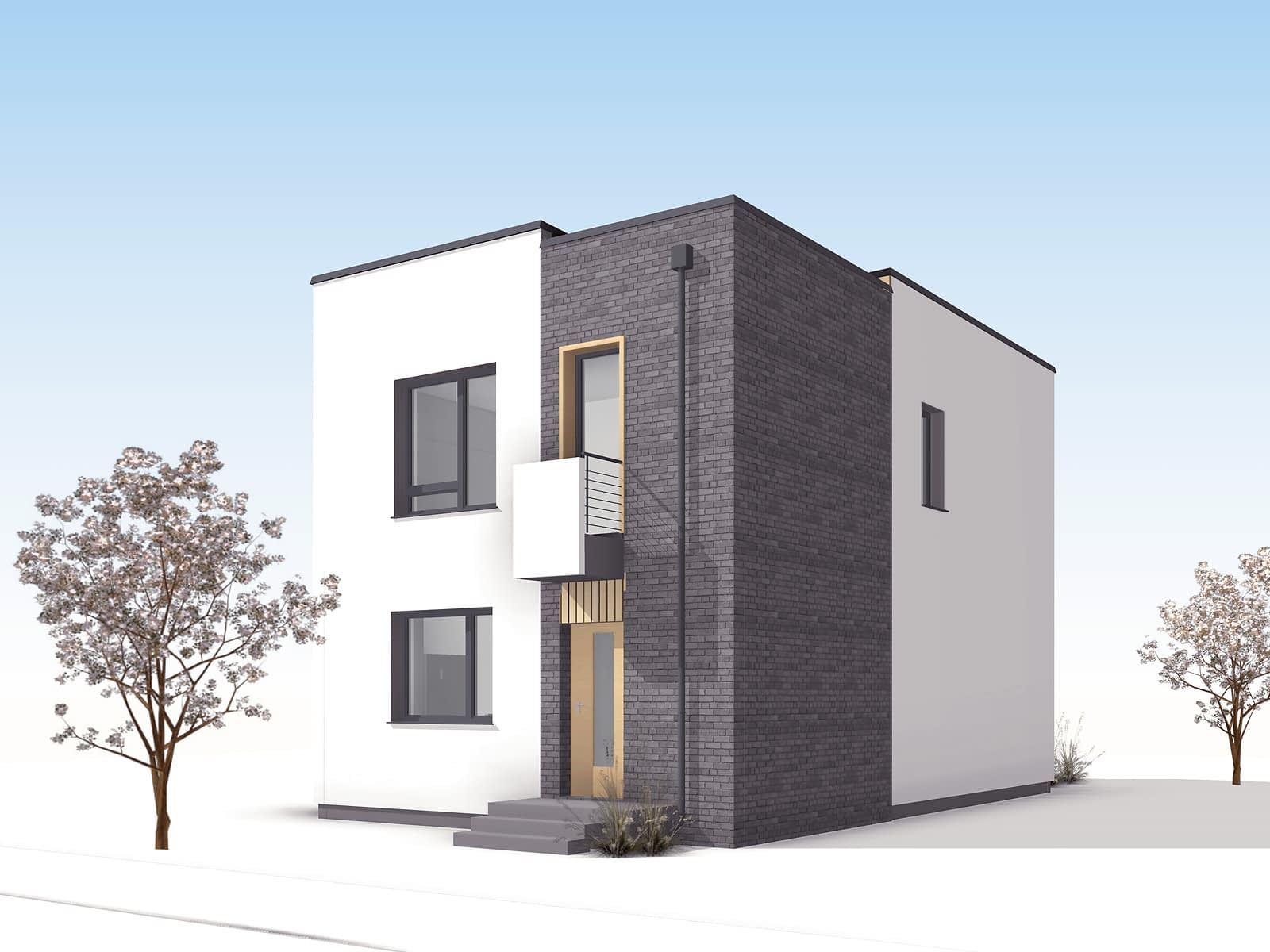 Jarzębina to niewielki piętrowy dom przeznaczony dla 4-osobowej rodziny. Projekt przyciąga uwagę prostą, nowoczesną bryłą. Podział na strefę dzienną i prywatną odpowiada podziałowi na parter i piętro. Otwarta przestrzeń parteru umożliwia swobodną aranżację wnętrz. Układ funkcjonalny został rozplanowany wokół głównego pionu w którym znajdują się pomieszczenia i urządzenia techniczne i sanitarne. Piętro, jako część prywatna, mieści trzy sypialnie z dostępem do balkonów oraz łazienkę. Zwarta bryła pozwala obniżyć koszty budowy i utrzymania domu.Konstrukcja