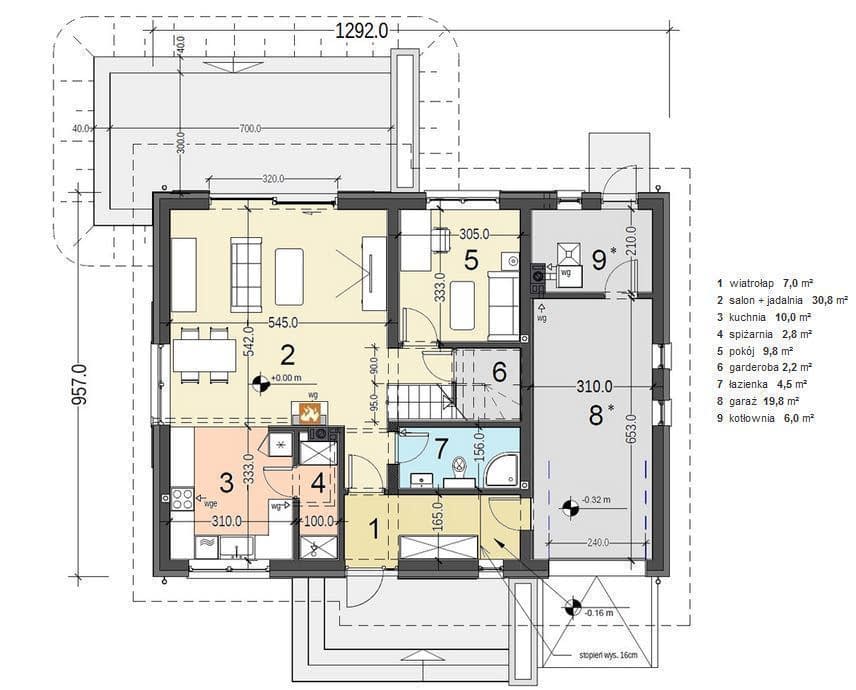 - pompa ciepła powietrze-woda + ogrzewanie podłogowe to dodatkowo 350 zł do ceny projektu.