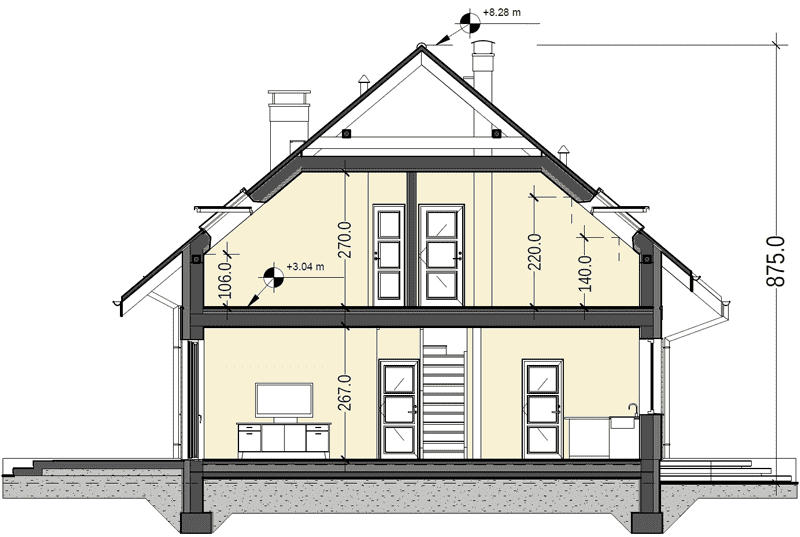 - Wysokość domu8.75 m