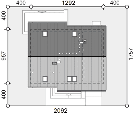 - Minimalne wymiary działki20.92 x 17.57m