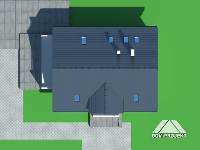 Nowoczesny dom z poddaszem mieszkalnym. Salon i aneks kuchenny tworzą wspólną przestrzeń. W salonie kominek i schody prowadzące na poddasze. Salon doskonale oświetlony światłem dziennym. Na parterze ponadto gabinet (może być biurem w domu), łazienka, kotłownia i spiżarka. Cztery sypialnie i dwie łazienki na poddaszu. Trzy sypialnie mają wyjście na balkon.Rzuty