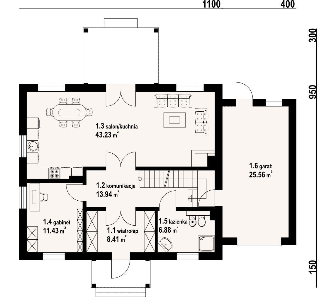 opisu architektonicznego zawierającego m.in. opis przyjętych rozwiązań, zestawienia powierzchni (użytkowej, zabudowy, netto), kubatury oraz powierzchni poszczególnych pomieszczeń.