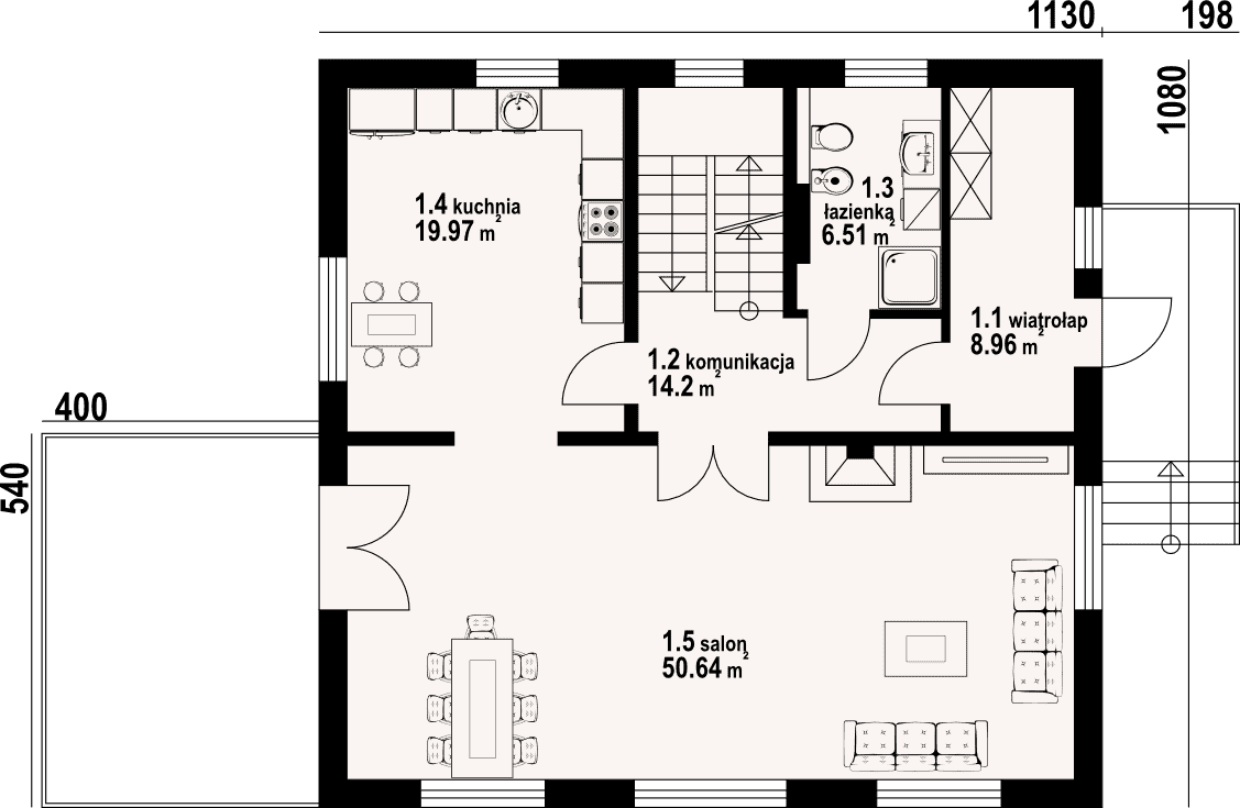 opisu architektonicznego zawierającego m.in. opis przyjętych rozwiązań, zestawienia powierzchni (użytkowej, zabudowy, netto), kubatury oraz powierzchni poszczególnych pomieszczeń.