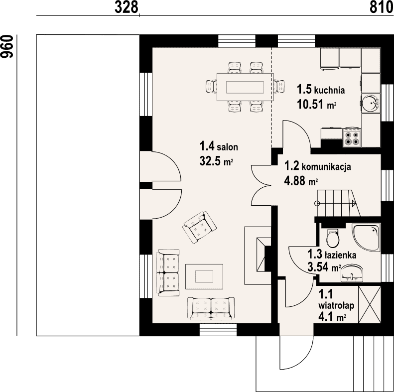 opisu architektonicznego zawierającego m.in. opis przyjętych rozwiązań, zestawienia powierzchni (użytkowej, zabudowy, netto), kubatury oraz powierzchni poszczególnych pomieszczeń.