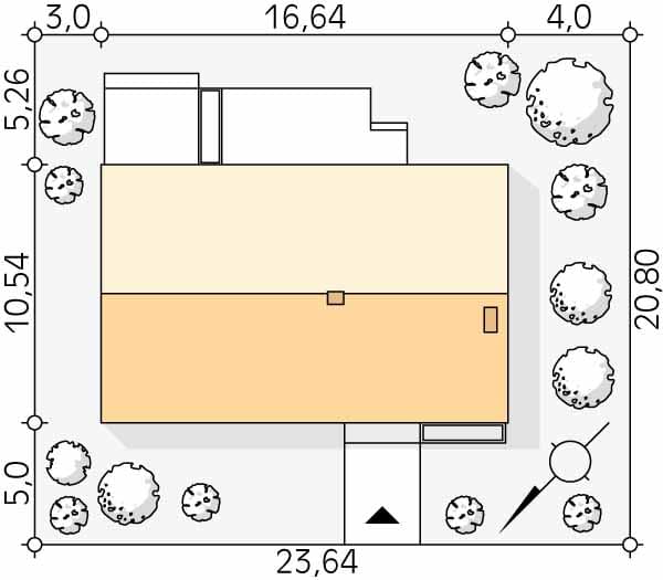 - Minimalne wymiary działki20.8 x 23.64m