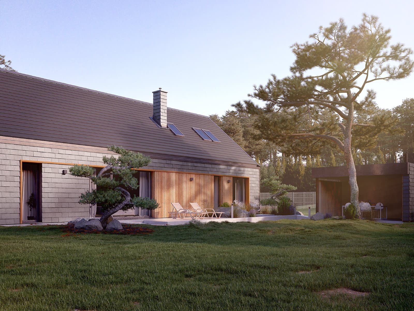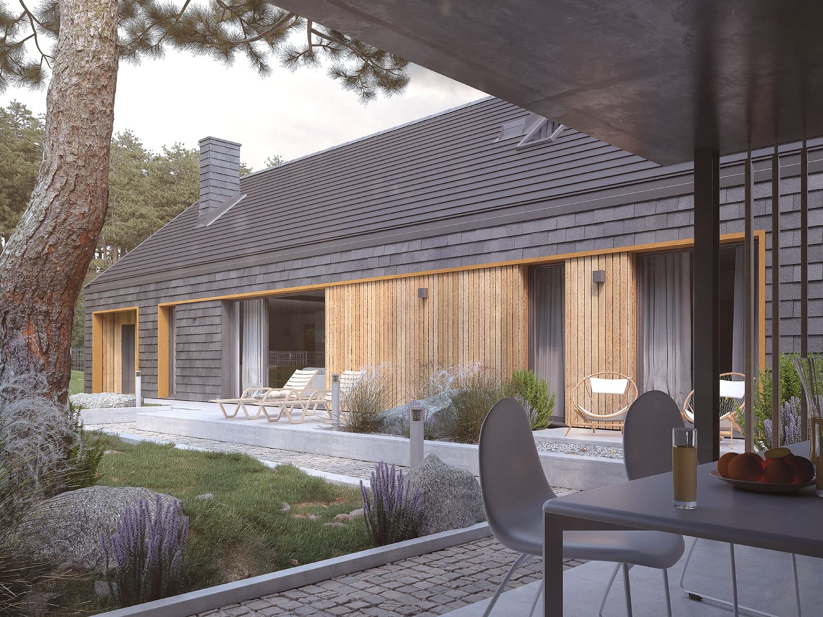 - rzuty poziome poszczególnych kondygnacji (parter, poddasze lub piętro),