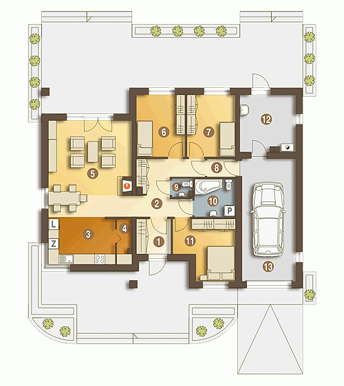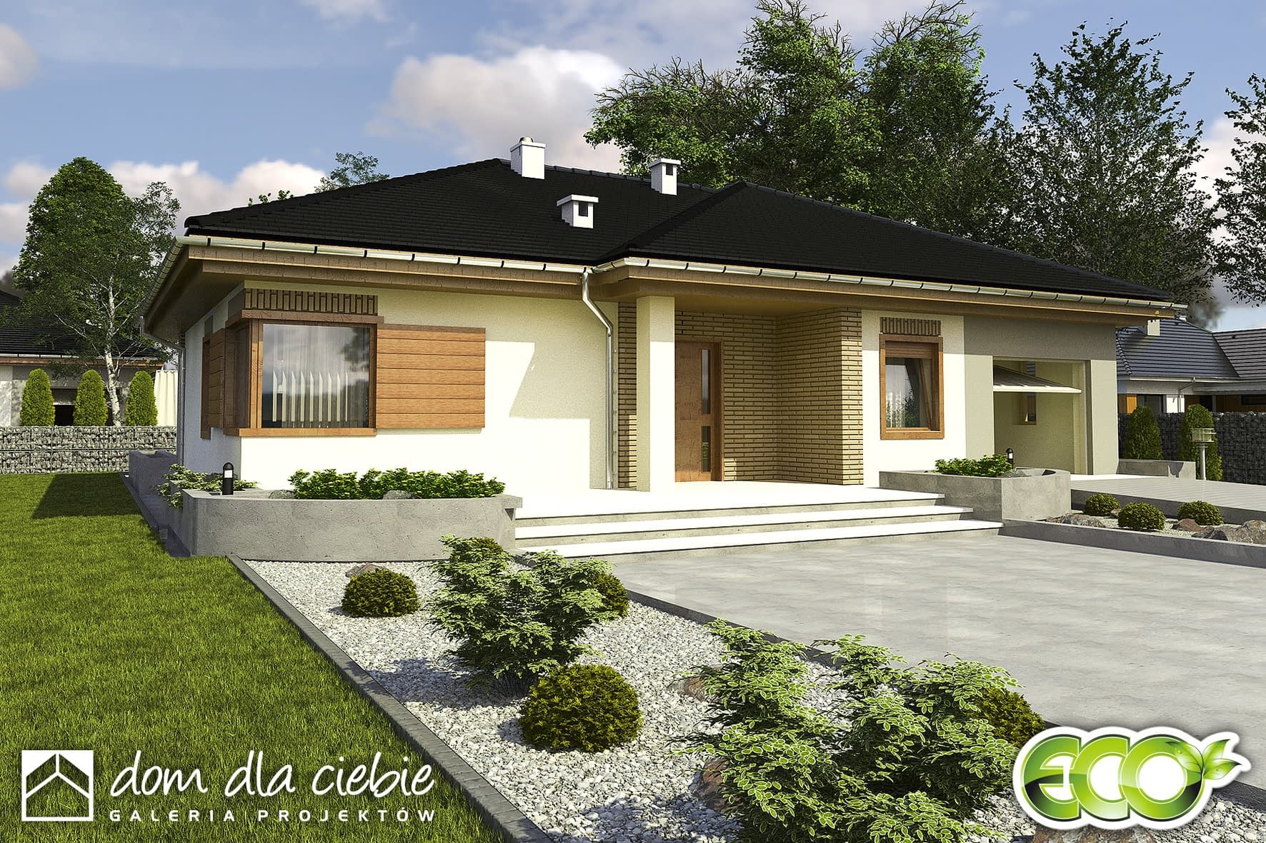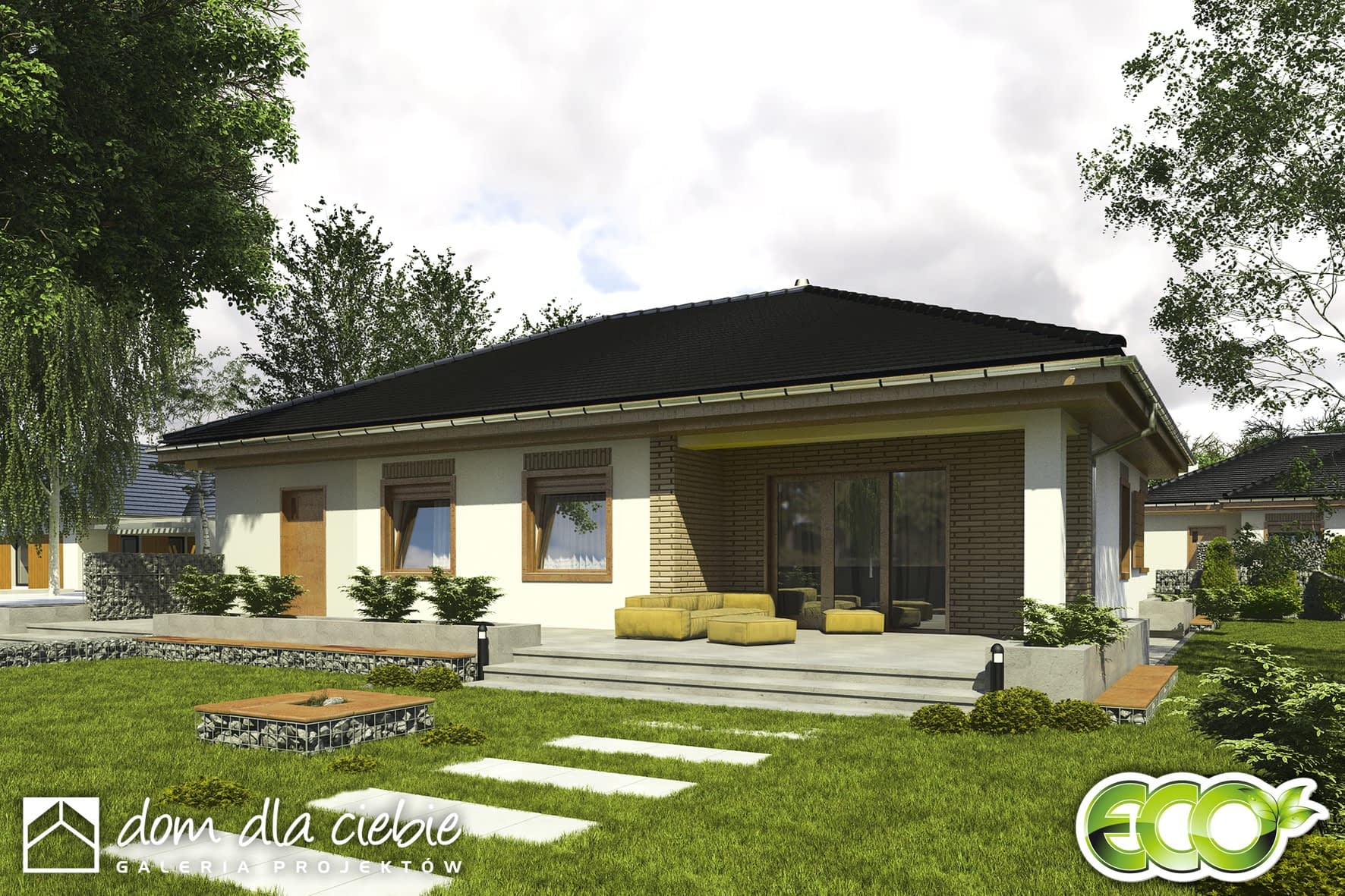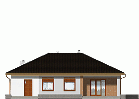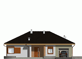 Jerzyk II to nowy projekt o klasycznej bryle domu parterowego z dachem wielospadowym. Program funkcjonalny budynku jest dostosowany do potrzeb 3-4 osobowej rodziny. Funkcja Jerzyka podzielona jest na strefę dzienną i nocną. W dziennej strefie zaprojektowano foremny salon z kominkiem i wyjściem na częściowo zadaszony taras oraz otwartą kuchnię ze spiżarnią. Część nocną stanowią trzy niewielkie sypianie oraz duża łazienka i osobnym wc. Do pomieszczenia technicznego można dostać się poprzez garaż i hol. Hol spełnia funkcję komunikacyjną w budynku. Sprawdź inne projekty domów - Zapraszamy !
