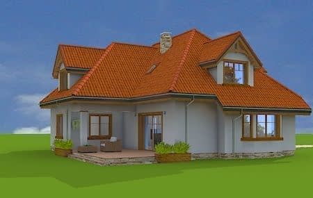 Projekt domu Jesion 2 to wariantowa wersja projektu Jesion. Pracownia przychyliła się do sugestii Klientów, którym oryginalny projekt podobał się, ale szukali mniejszego, oszczędniejszego domu. Projekt domu Jesion 2 jest o prawie jedną trzecią mniejszy od wersji podstawowej, nie ustępując swemu większemu protoplaście, ani w urodzie, ani w wygodzie wnętrza. Dom Jesion 2 jest budynkiem parterowym, z poddaszem użytkowym, przewidziano go dla cztero-pięcioosobowej rodziny. Plan zbudowany na układzie litery "T" przekryty jest wielospadowym dachem. Tak samo jak w pierwowzorze w wewnętrznym narożniku budynku znajduje się zaciszny taras, oraz podcień, gdzie suchą stopą można korzystać z tarasu mając dach nad głową. Architektonicznie dom jest klasycznym polskim dachowcem, nie aspiruje do wizerunku nowoczesnych, ekstrawaganckich form. Budynek jest podmiejski, przedmieściowy - ma połączyć mieszkańców z otaczającą przyrodą i innymi podobnymi domkami. Wnętrze domu na parterze to głównie salon połączony z holem i jadalnią, oraz półotwartą kuchnią. Z salonu widać centralnie umiejscowione schody, oraz ścianę kominkową, z salonu również wychodzi się na taras. Z holu przechodzimy do dodatkowego pokoju - gabinetu lub dodatkowej sypialni. Z drugiej strony wejścia zmieszczono garaż i kotłownię. Na poddaszu miejsce znalazły trzy duże sypialnie z garderobami i szafami wbudowanymi i duża łazienka - pokój kąpielowy. Pracownia posiada też wersję projektu domu Jesion 2 w odbiciu lustrzanym.