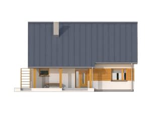 Dom jednorodzinny z użytkowym poddaszem, niepodpiwniczony. Przeznaczony dla 4 – 5-osobowej rodziny. Na parterze zaprojektowano dodatkowy pokój, może on pełnić rolę sypialni lub gabinetu. Pokój dzienny połączony jest z jadalnią. Otwarta kuchnia pozostaje nieco na uboczu, wyposażona jest w stolik śniadaniowy. Na poddaszu zlokalizowano trzy sypialnie, dwie garderoby i dwie łazienki. Największa sypialnia posiada własną garderobę i łazienkę.Konstrukcja
