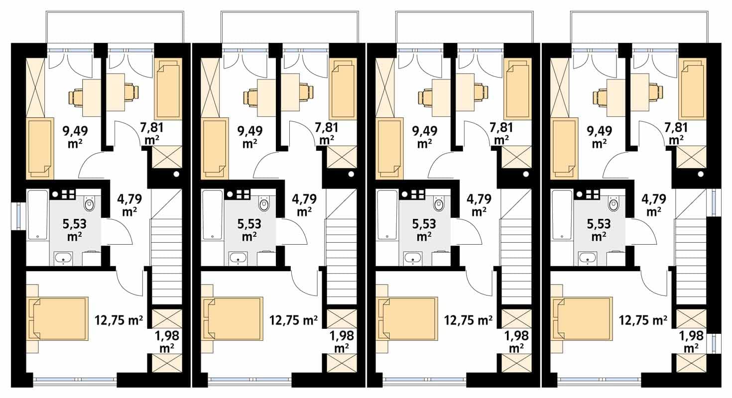 - rzuty poziome poszczególnych kondygnacji (parter, poddasze lub piętro),
