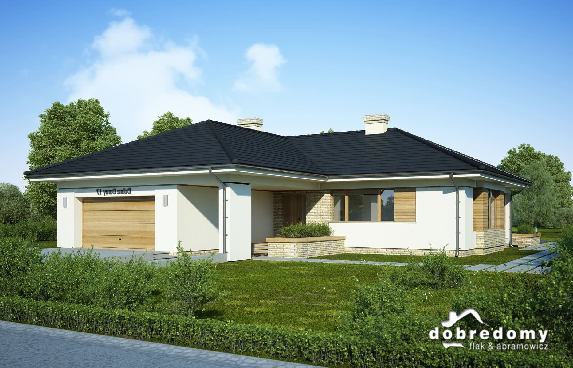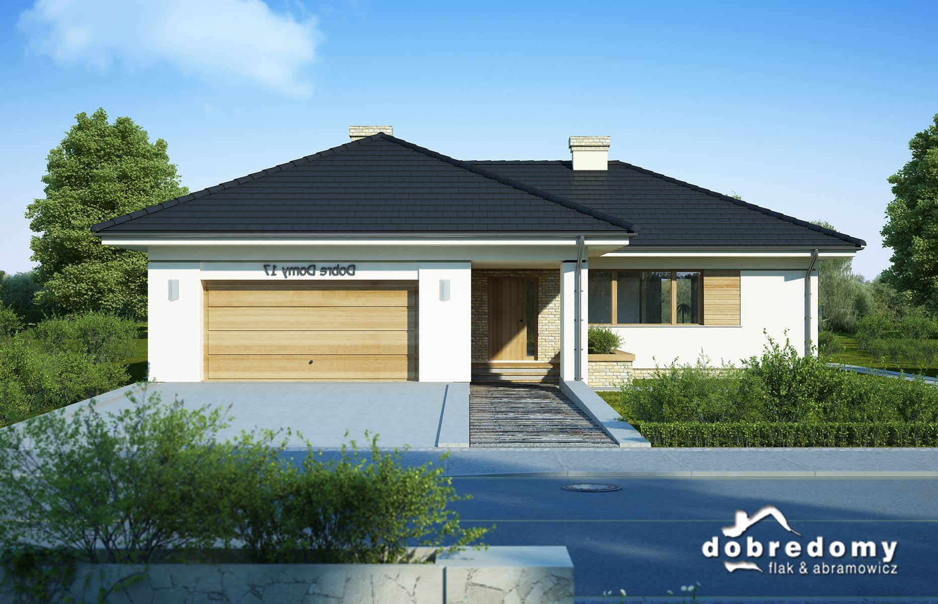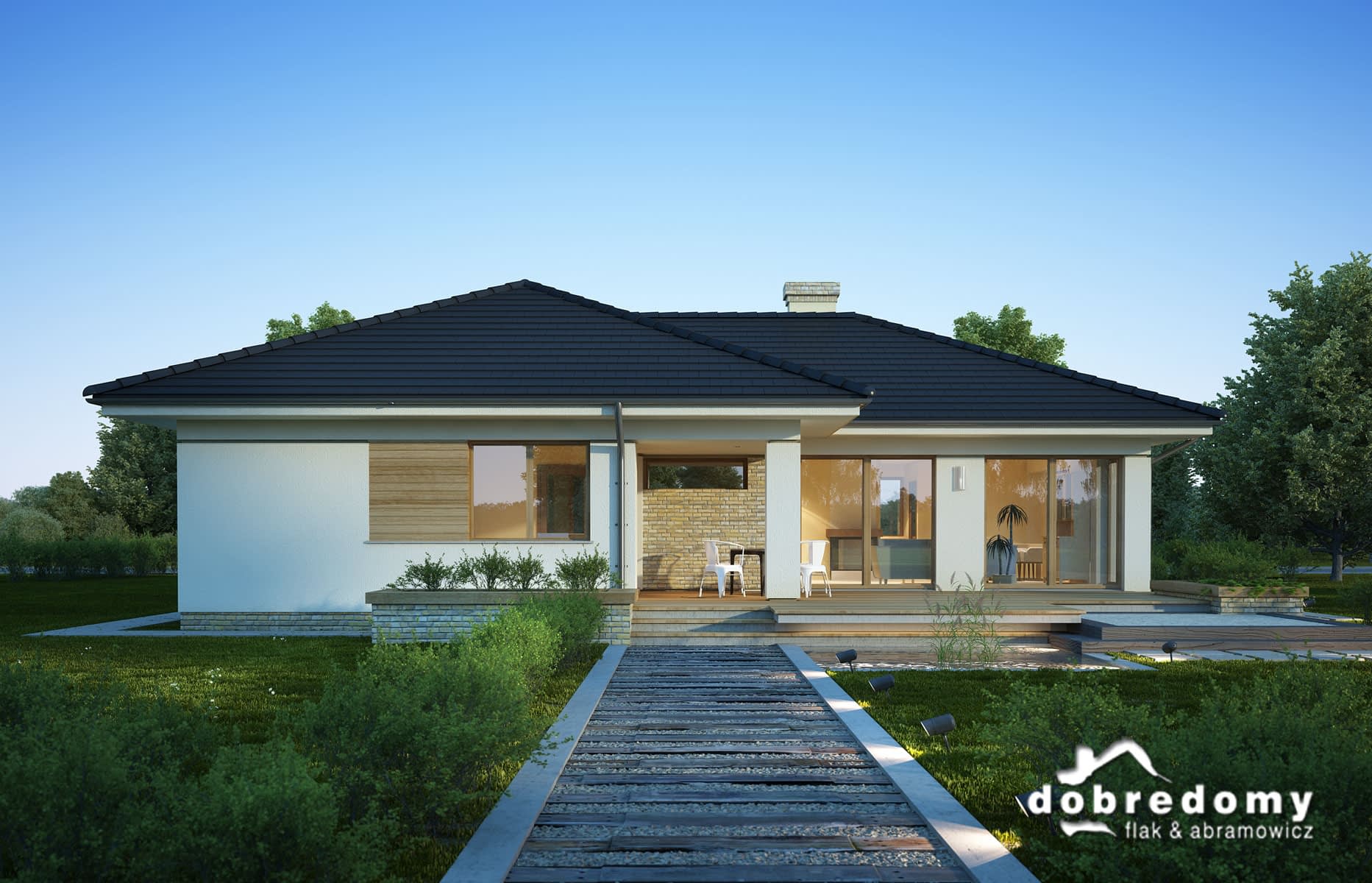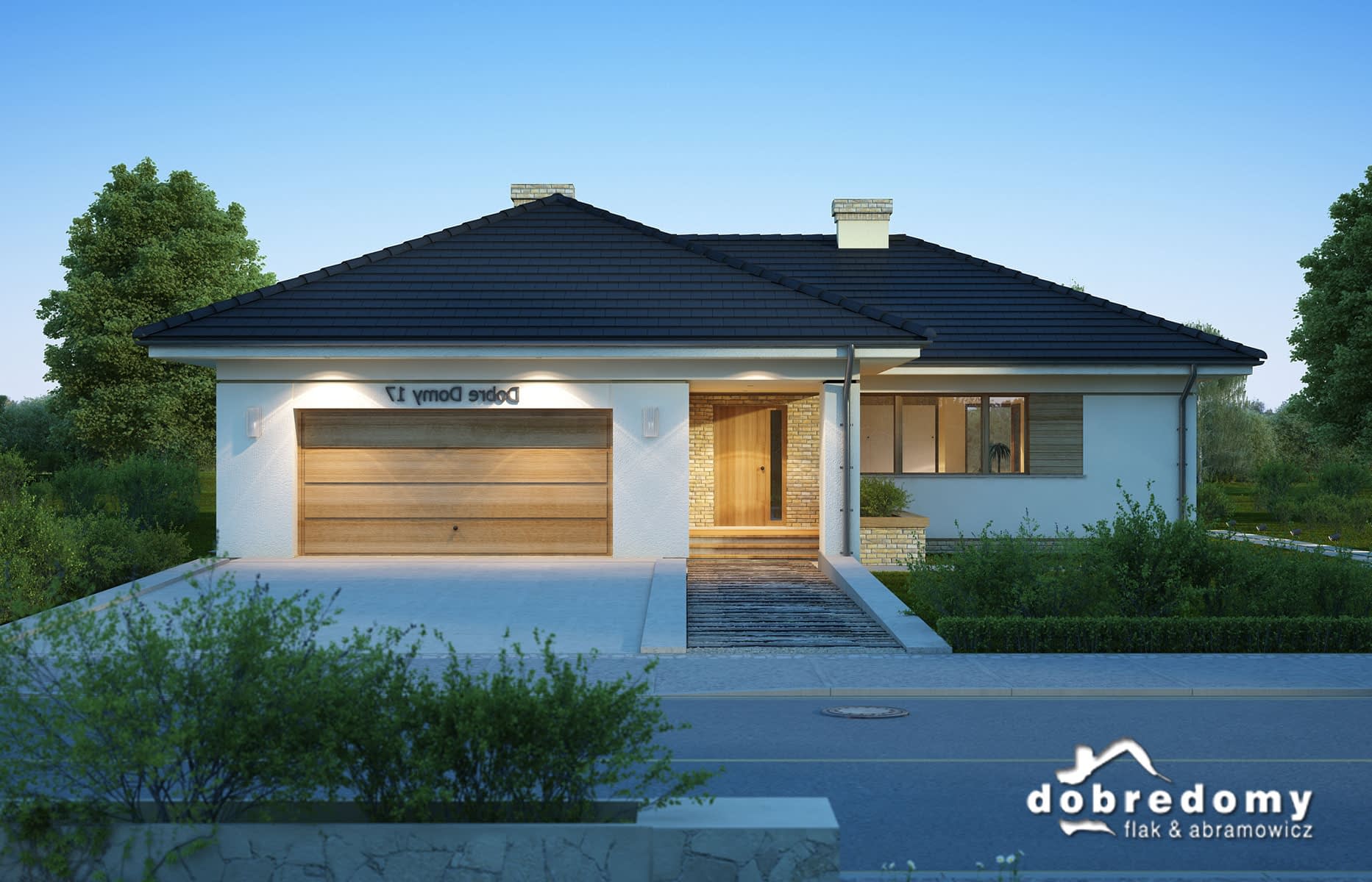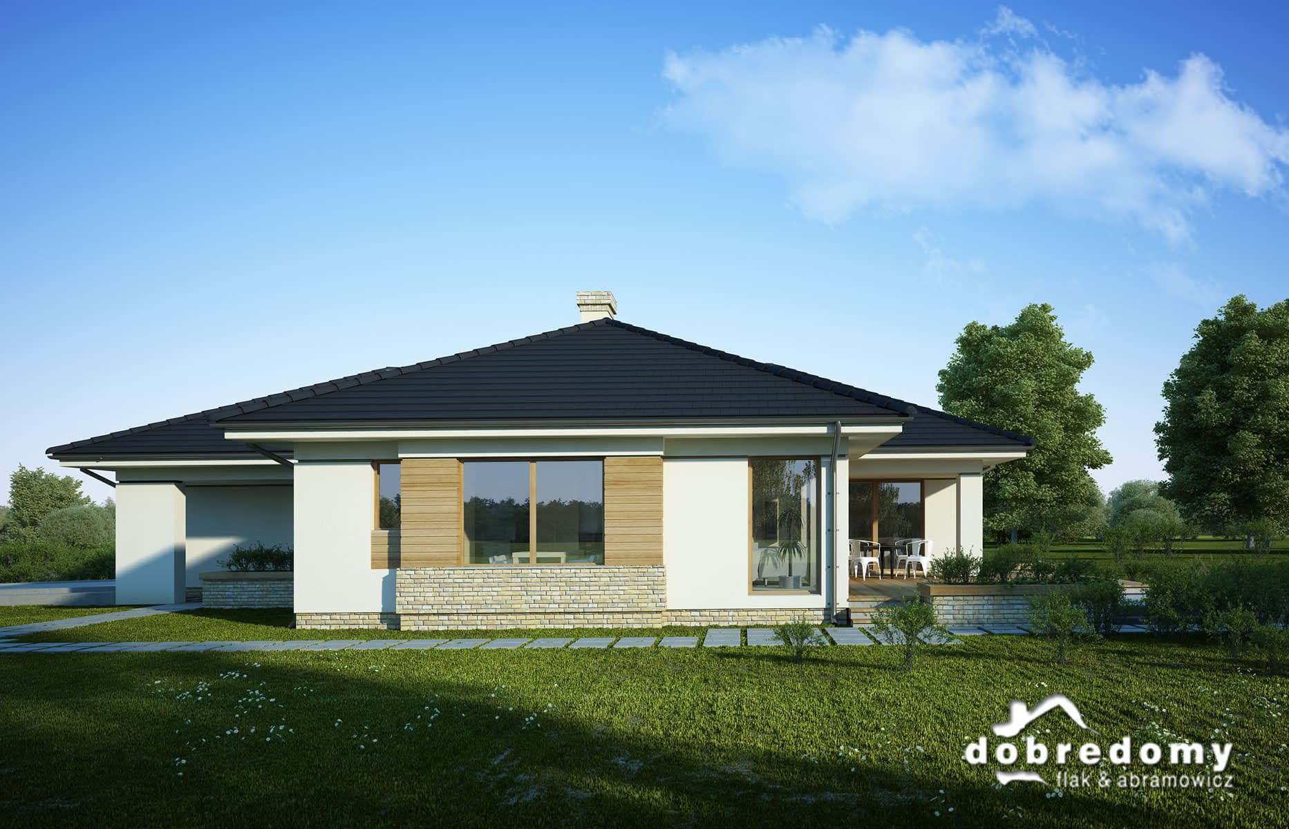Parterowy dom zaprojektowany dla 4-5 osobowej rodziny. Dom podzielony jest na trzy strefy. Część dzienna to salon z jadalnią, kuchnia z dużą spiżarnią, hall, wiatrołap oraz niewielka łazienka. Część prywatna składa się z trzech sypialni, dużej łazienki oraz korytarza. Część gospodarcza to dwuatnowiskowy garaż oraz pomieszczenie gospodarcze.