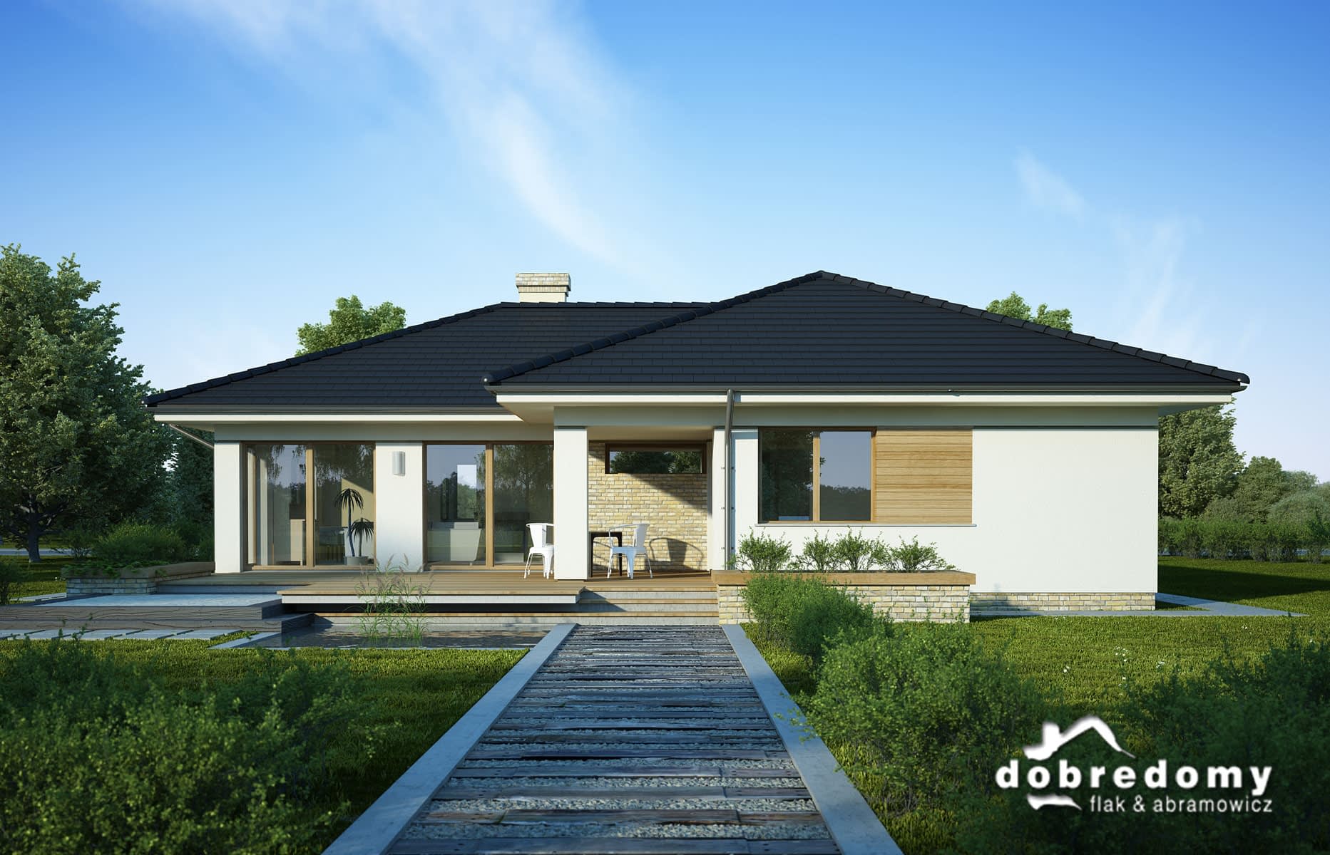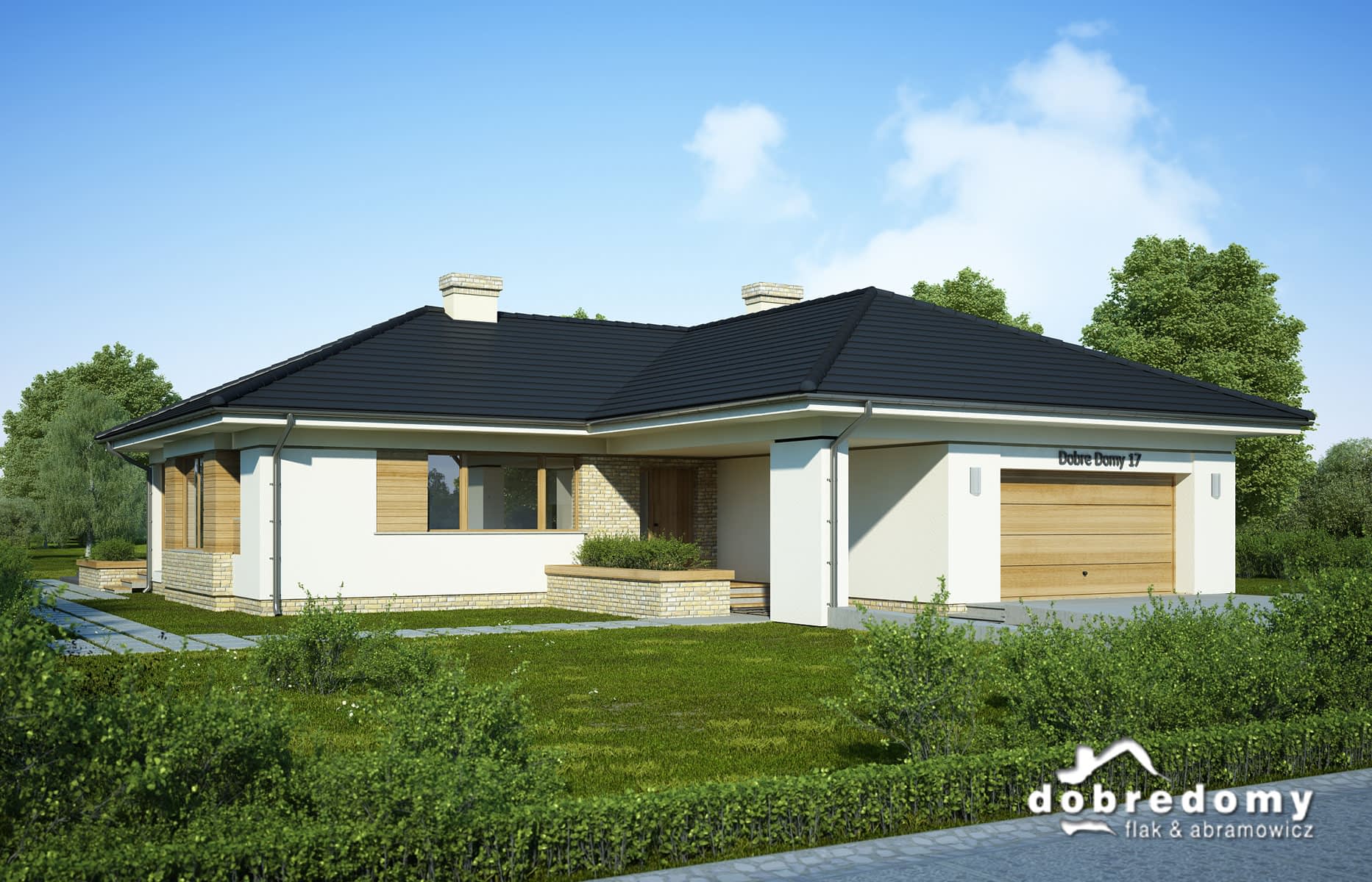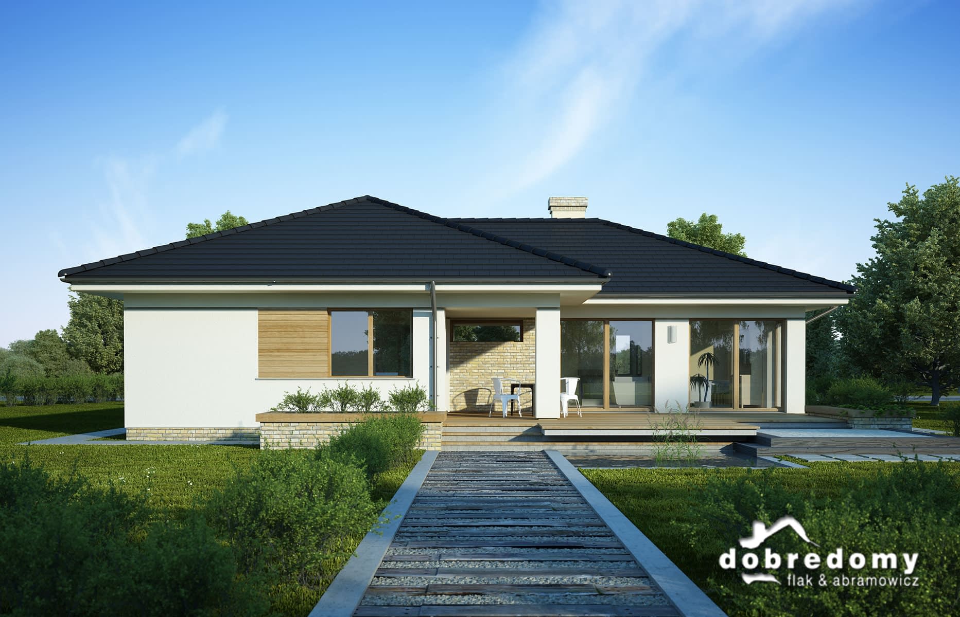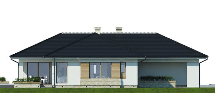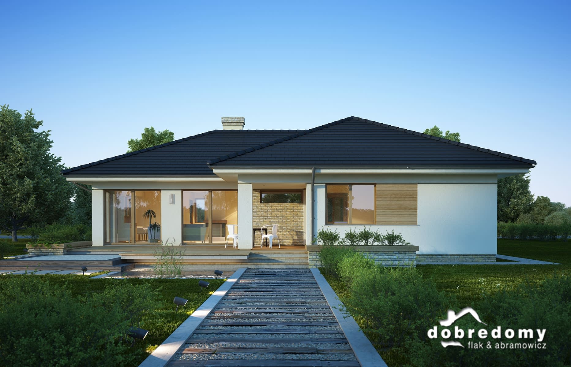 Parterowy dom zaprojektowany dla 4-5 osobowej rodziny. Dom podzielony jest na trzy strefy. Część dzienna to salon z jadalnią, kuchnia z dużą spiżarnią, hall, wiatrołap oraz niewielka łazienka. Część prywatna składa się z trzech sypialni, dużej łazienki oraz korytarza. Część gospodarcza to dwuatnowiskowy garaż oraz pomieszczenie gospodarcze.